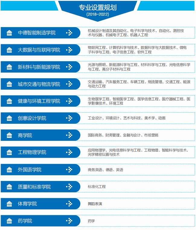 紧密对接深圳和粤港澳大湾区支柱产业及战略新兴产业,在数字化网络设备、新型显示、集成电路、新型元器件与零部件、机器人、精密制造装备、新型材料、新能源汽车、生命健康和创意设计等领域设置学科专业。