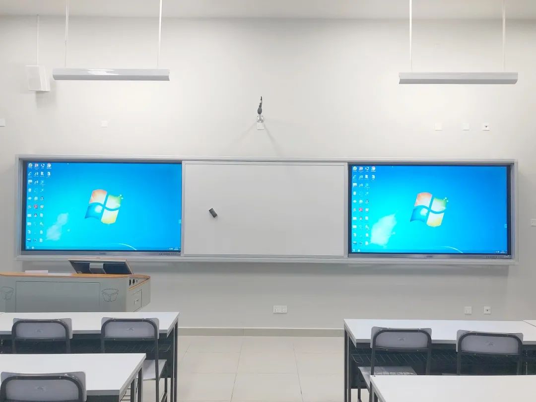 公共教学楼共有44个智慧教室,配置电力导轨、吊麦、单片机、活动桌椅、搪瓷黑板等,突破时空限制给大家带来不一样的教学体验,用科技为教学加分。