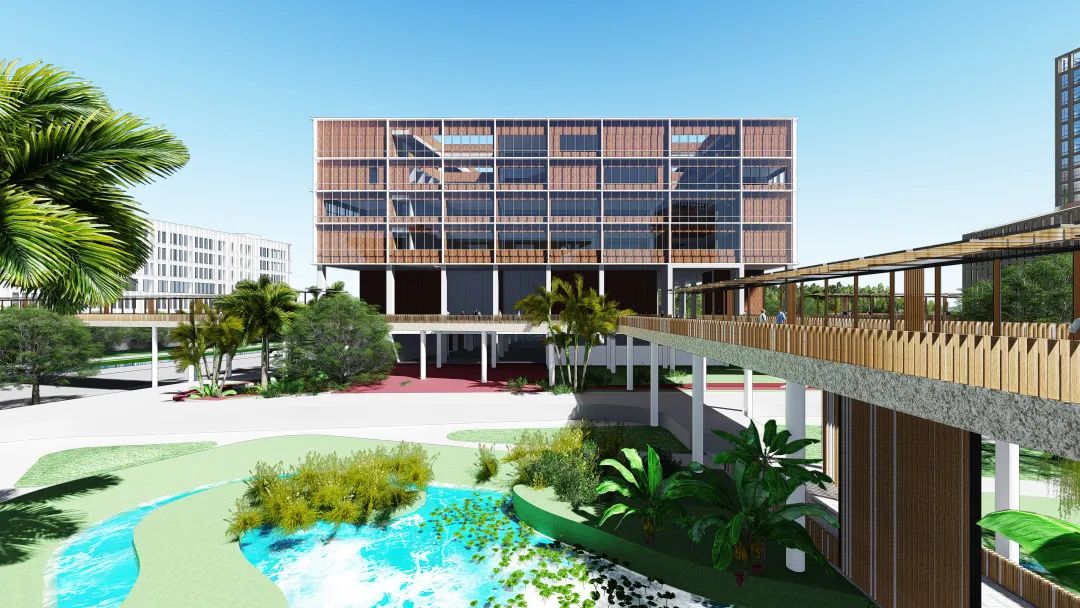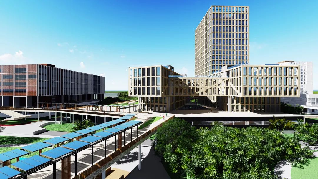 深技大的建设以全新的设计理念,建设生态景观走廊,打造“空中大学”。