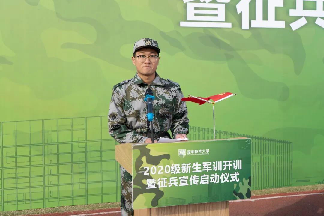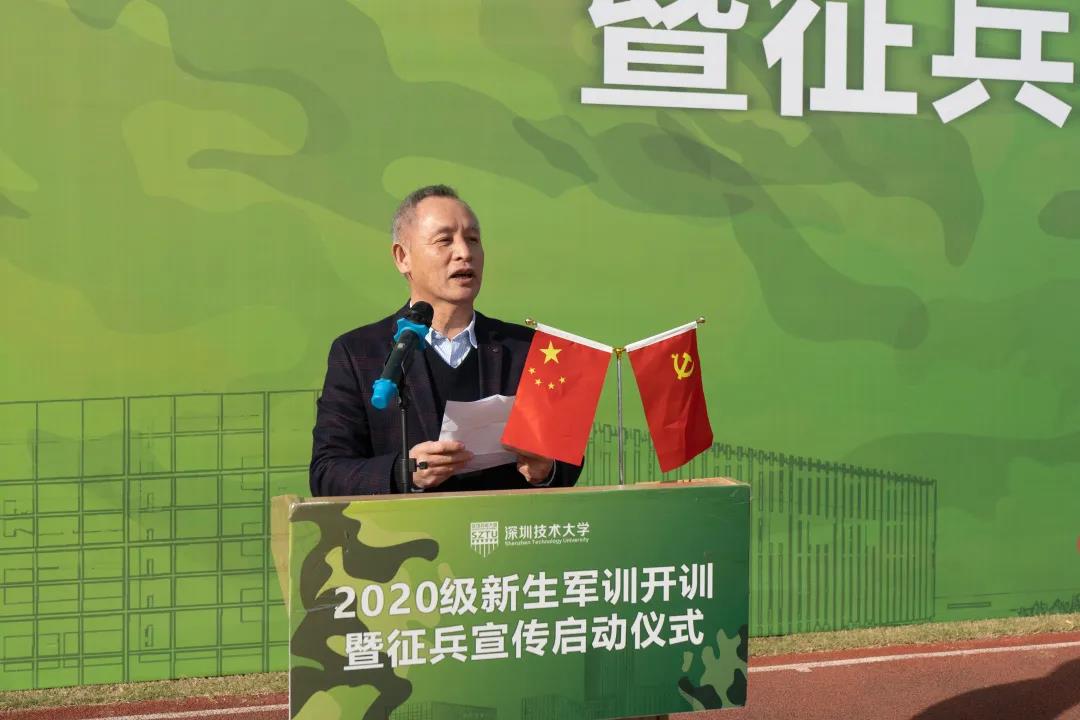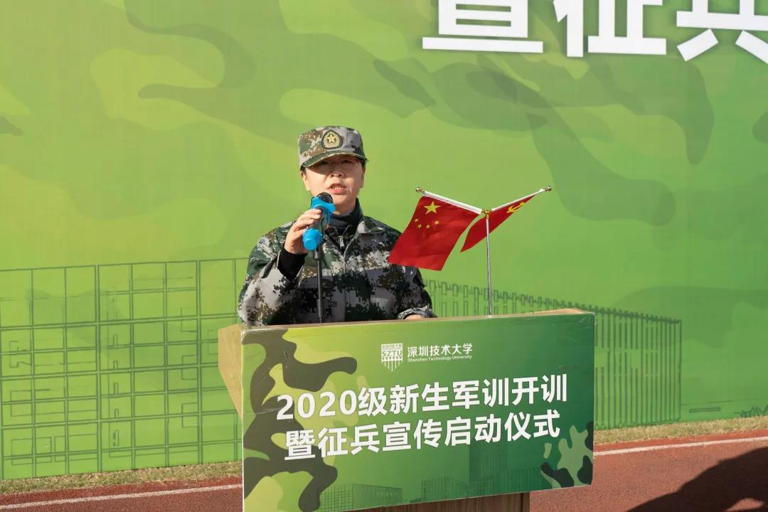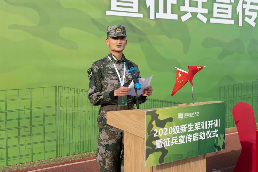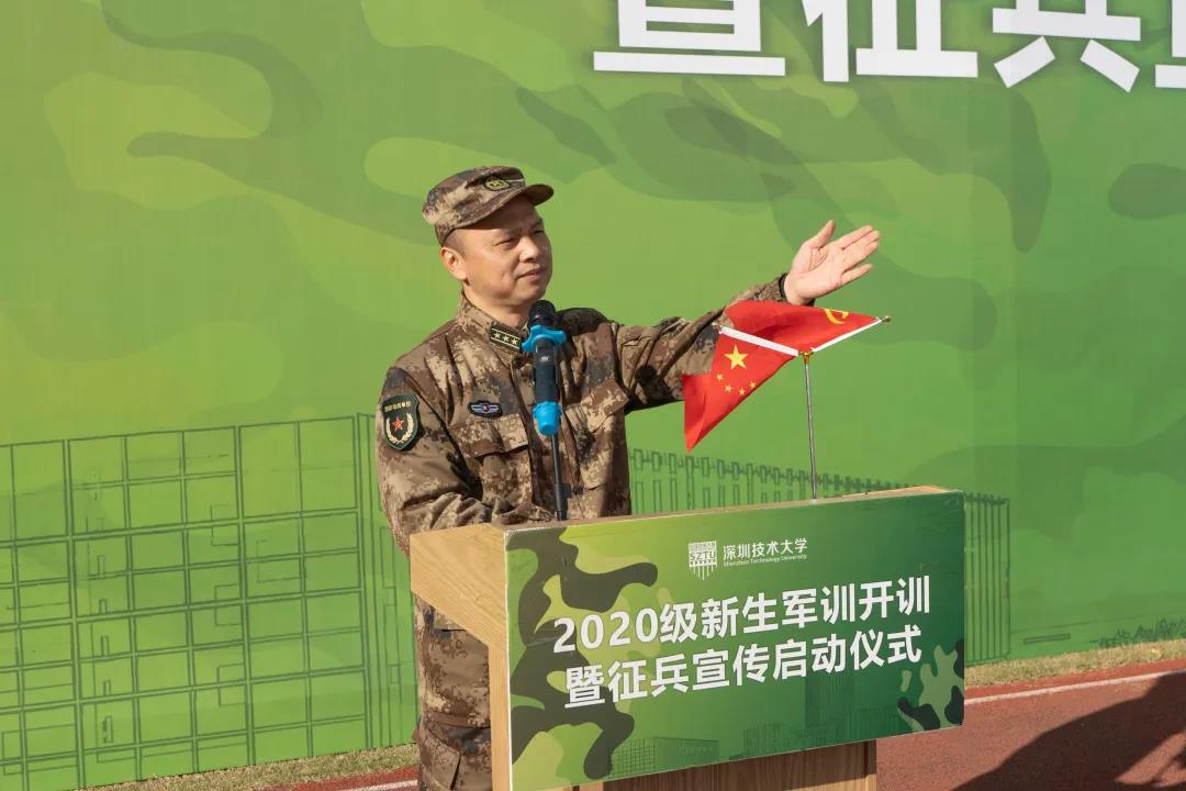 2021年1月9日上午9时,深圳技术大学举行“2020级新生军训开训暨征兵宣传启动仪式”。深圳警备区党委常委、政治工作处主任赵华,深圳警备区战备建设处参谋庞阔阔;深圳技术大学军训工作领导小组组长、学校副主任徐刚及军训工作办公室成员出席仪式。