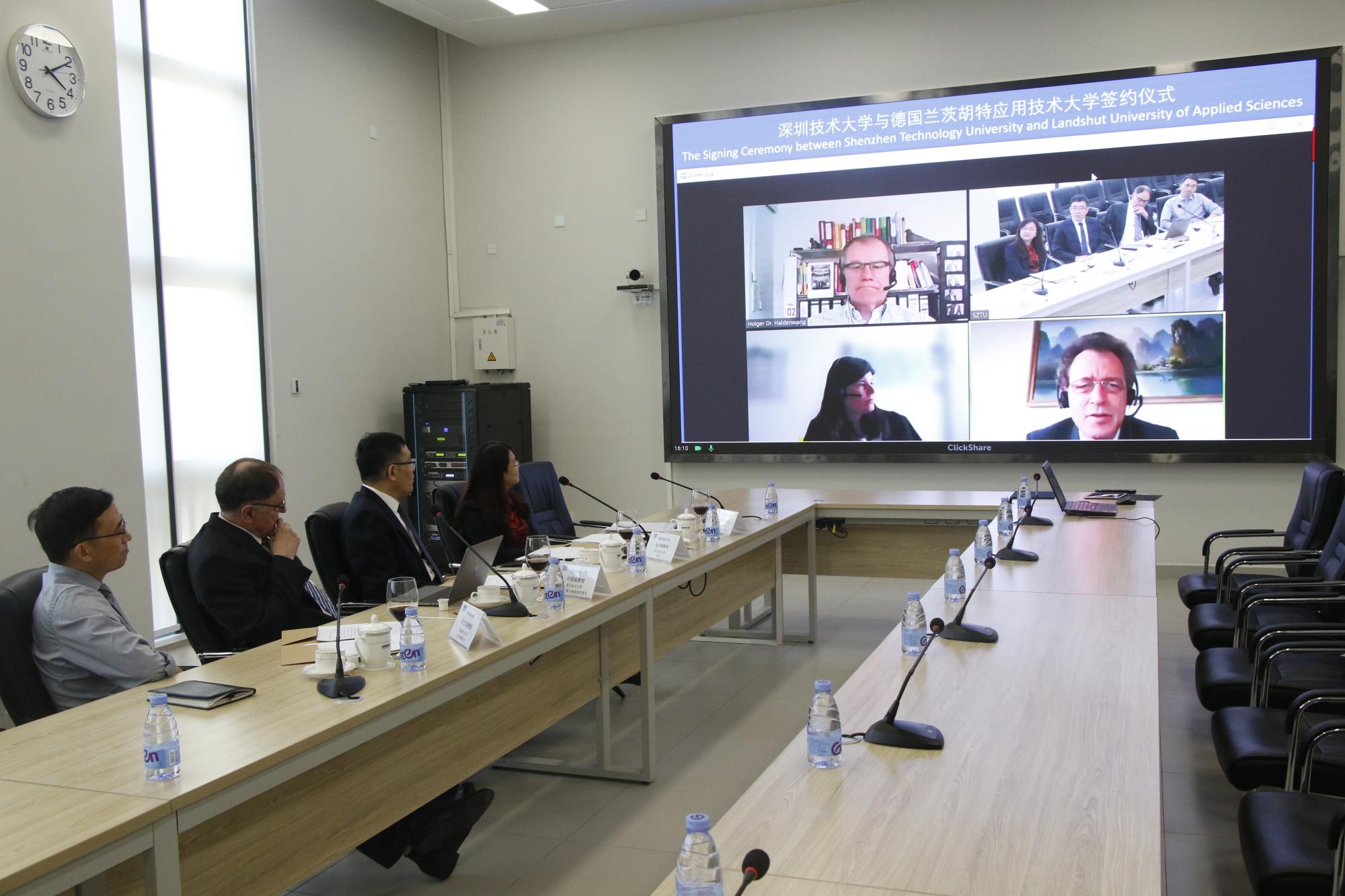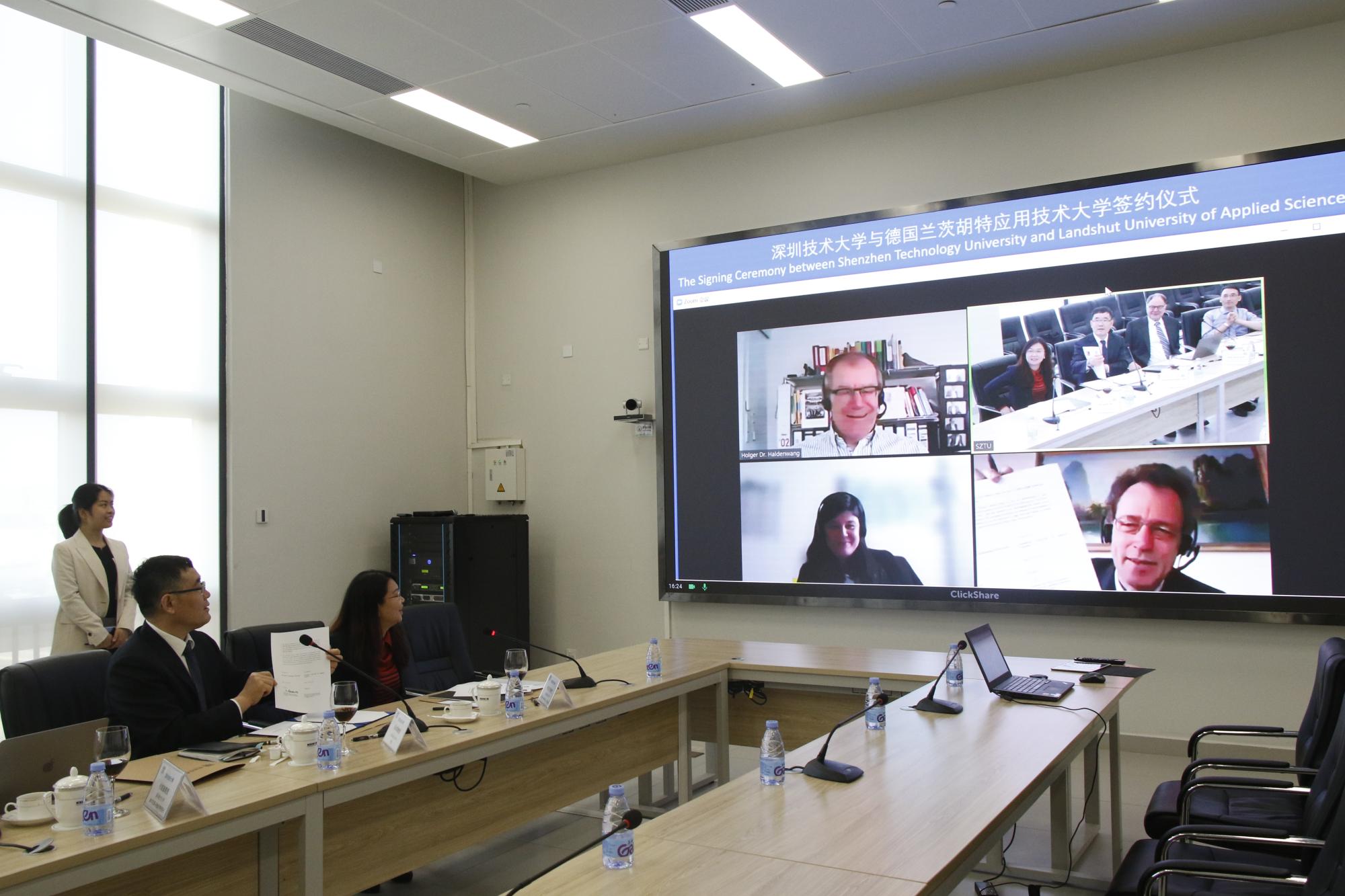 2月23日,深圳技术大学与德国兰茨胡特应用技术大学通过线上平台签约,国际合作伙伴再添新成员。深技大校长阮双琛、德国兰茨胡特应用技术大学校长Fritz Poernbacher出席仪式并代表双方签约。