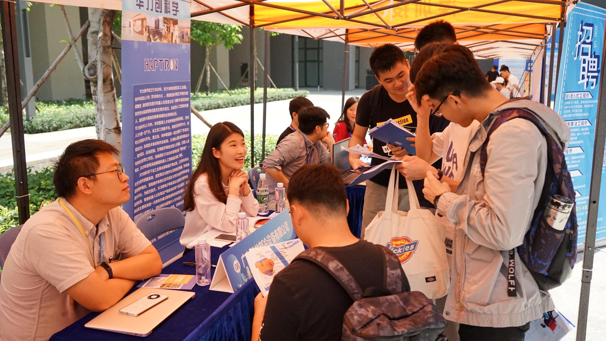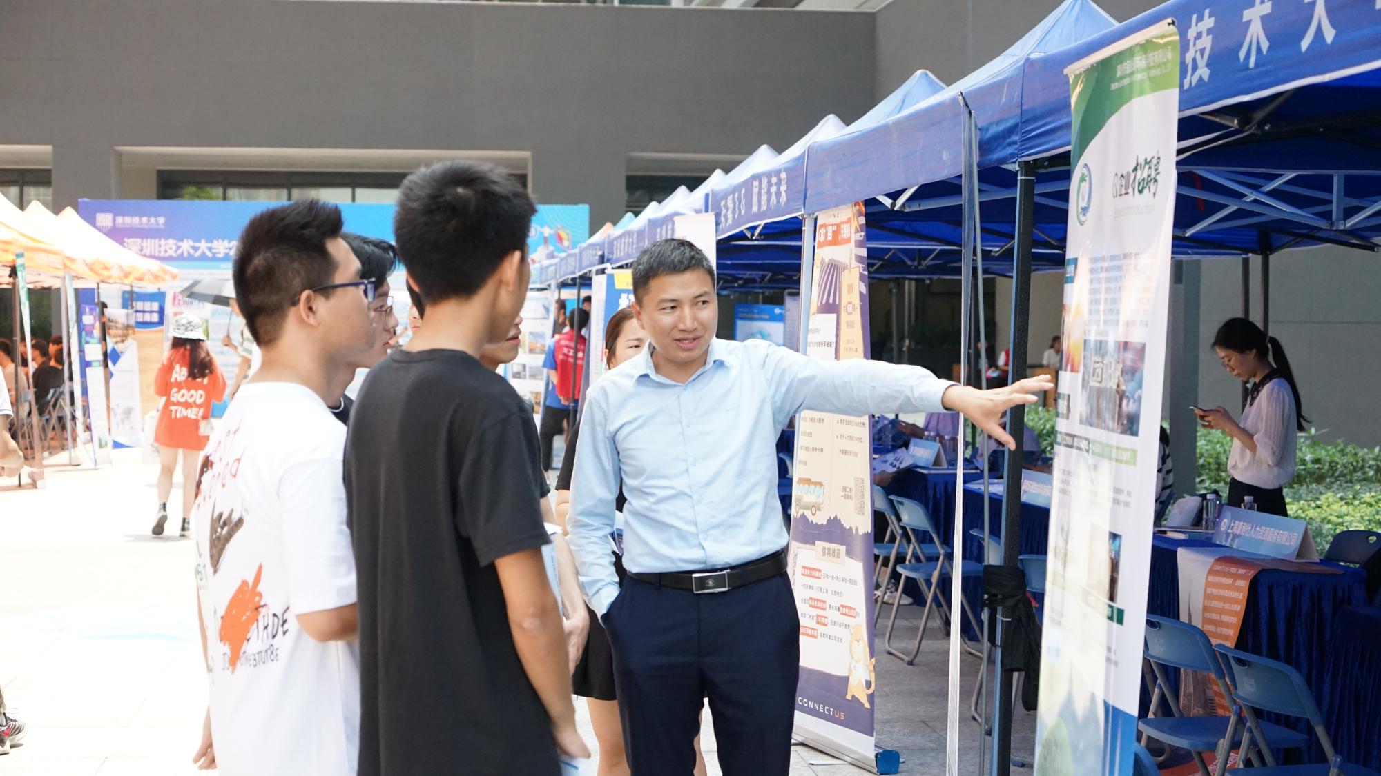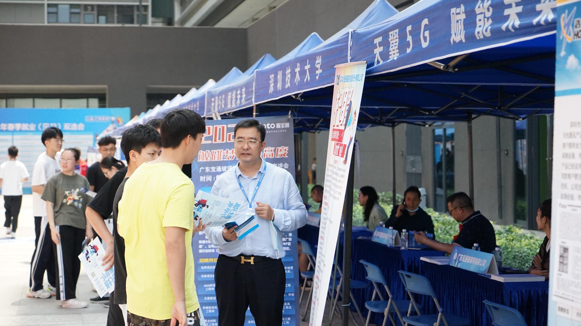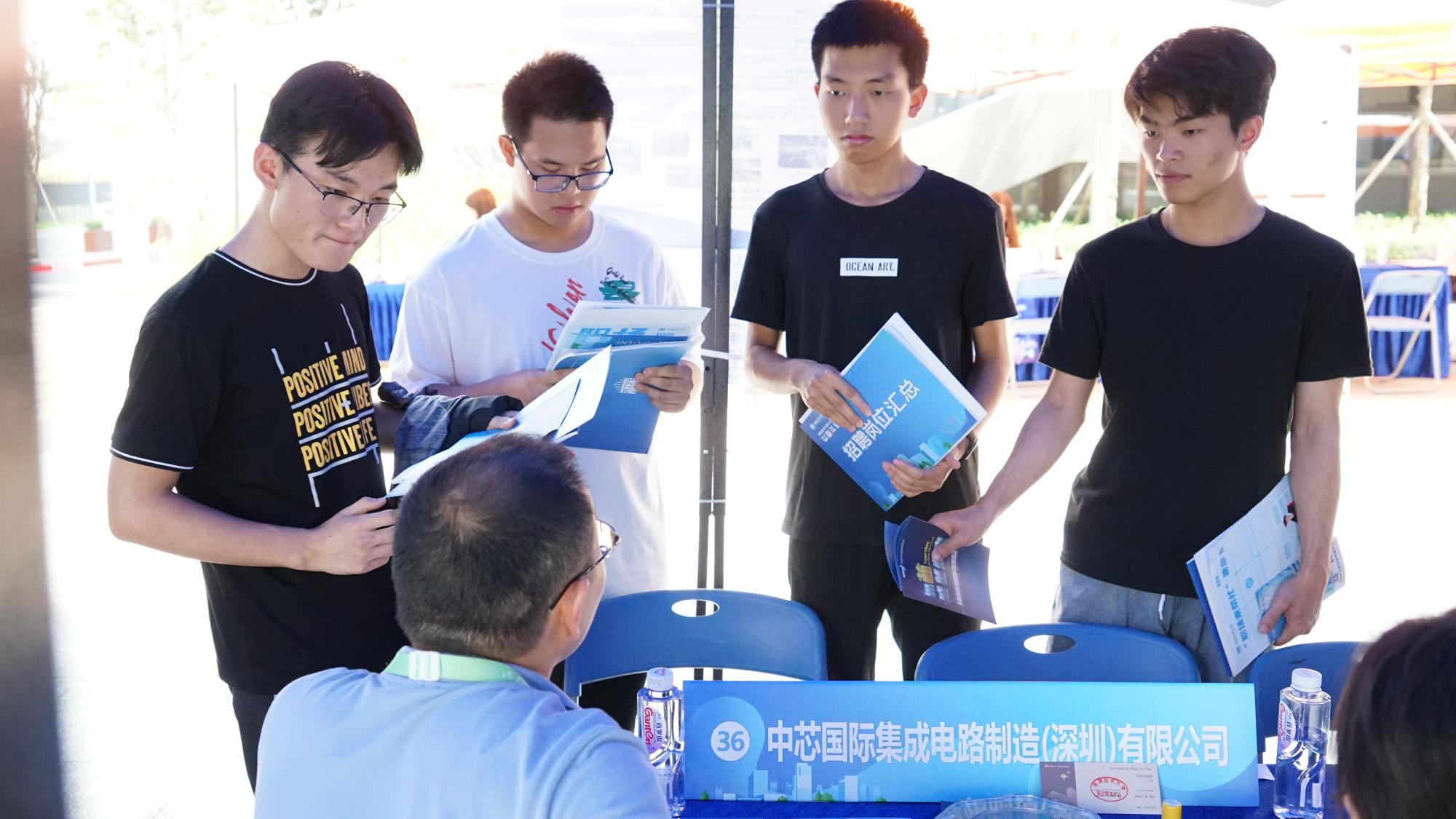 双选会邀请了中芯国际集成电路制造有限公司、深信服科技股份有限公司、比亚迪半导体、深超光电(深圳)有限公司等在内的36家企业参加,提供了1500个实习就业的岗位。双选会主要面向深圳技术大学2017级、2018级学生,活动现场同时吸引了众多大一大二的学生前来了解行业信息,提前为将来就业做准备。