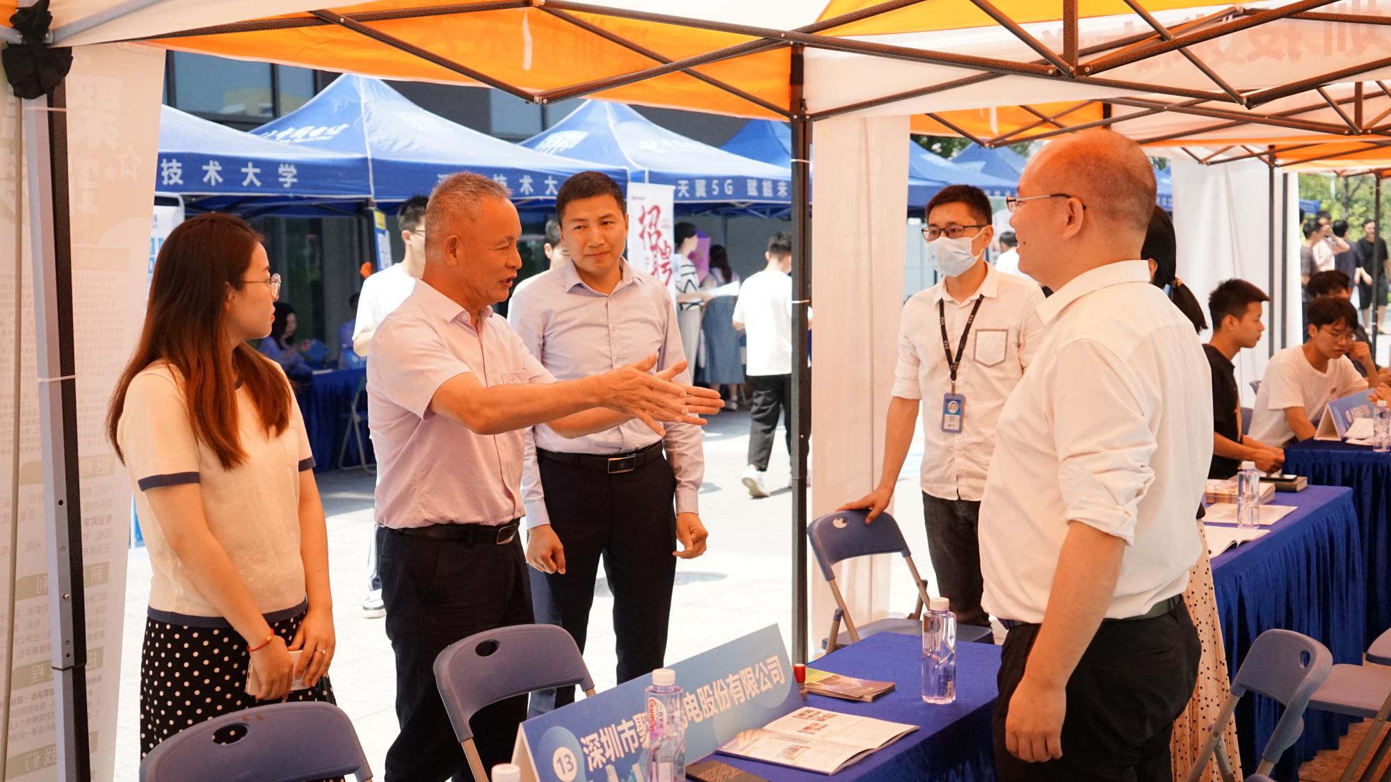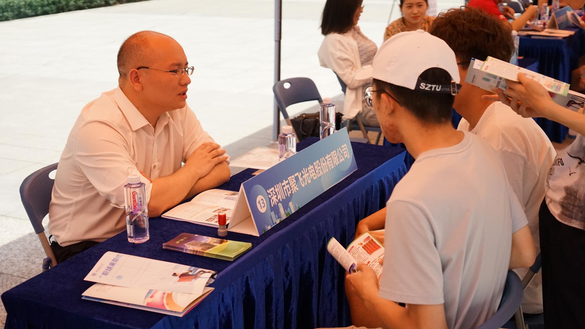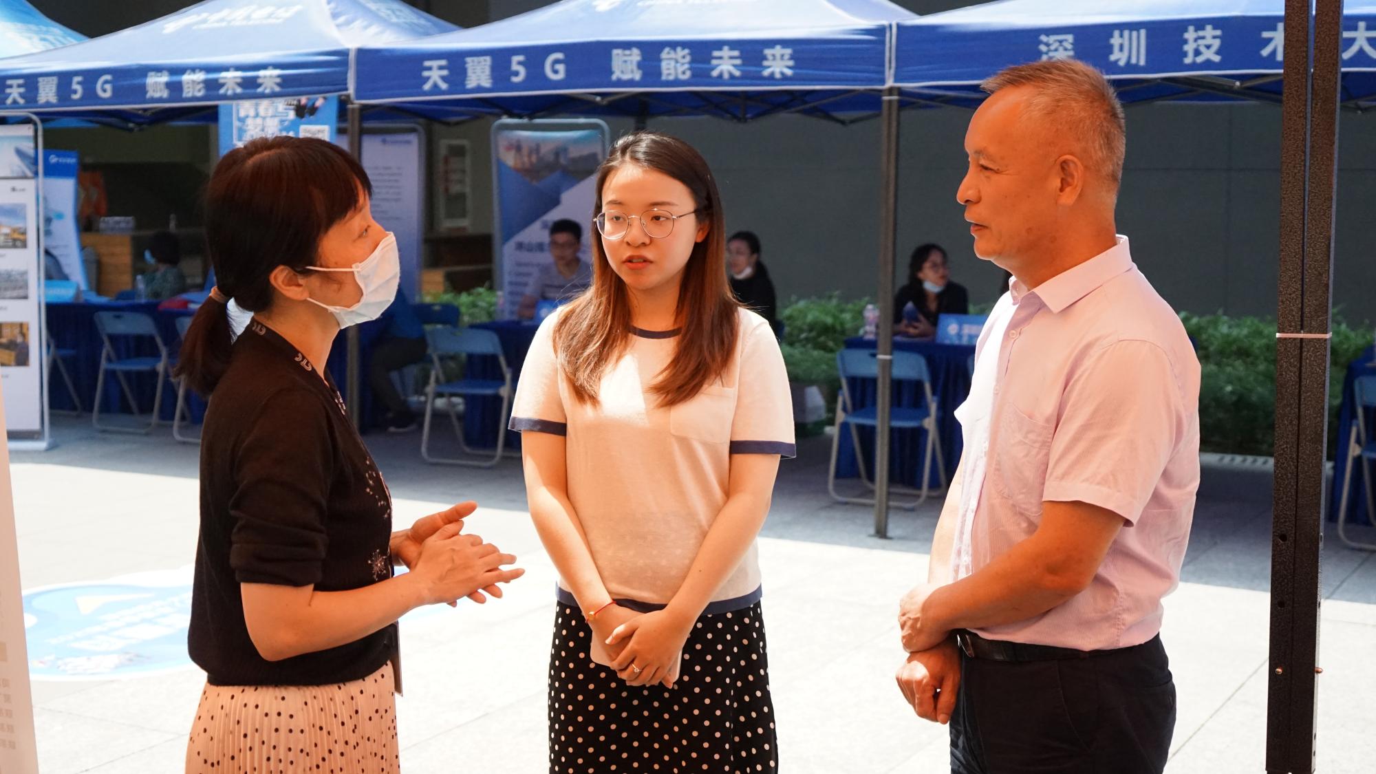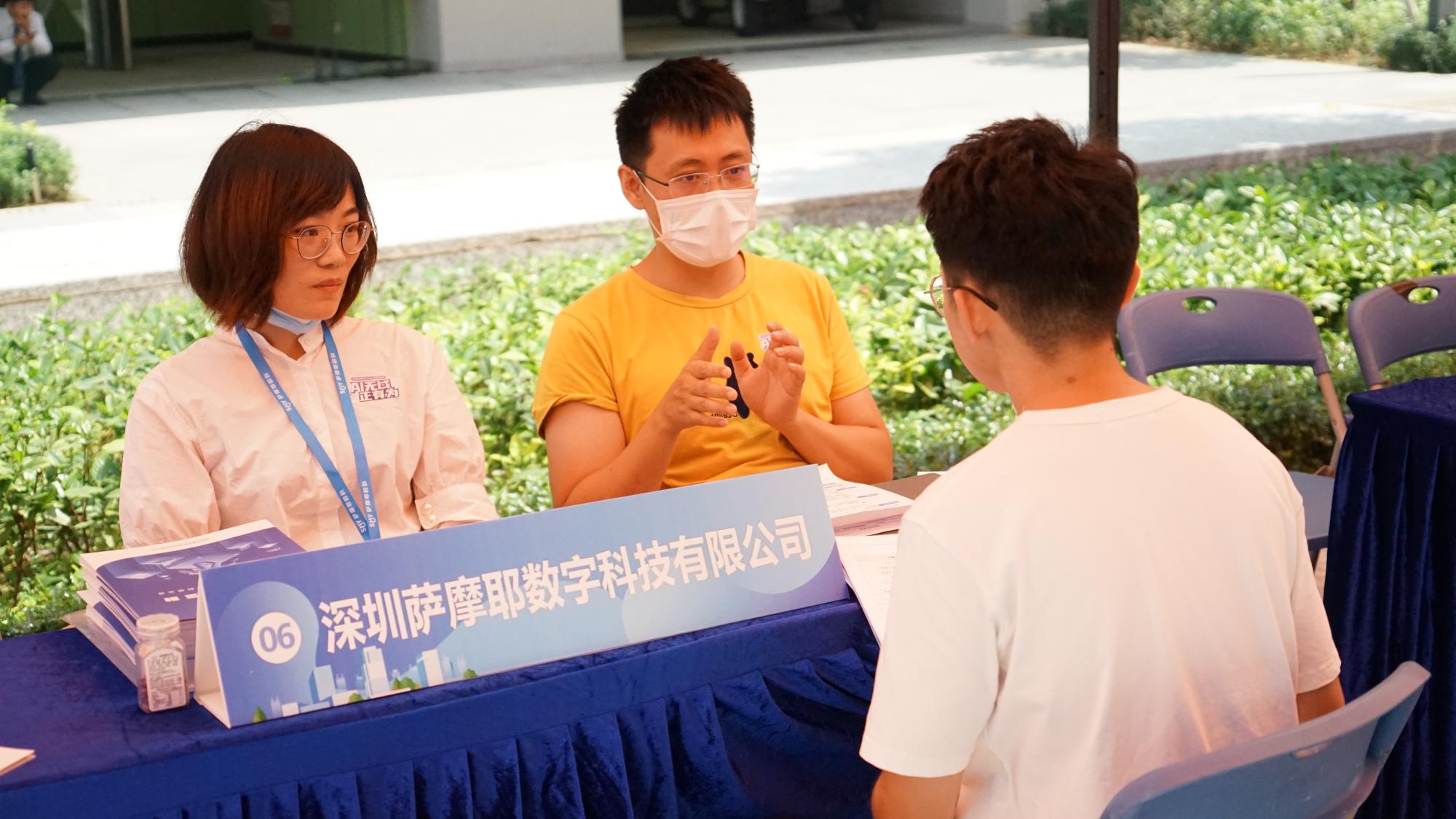 天气炎热,却依旧无法抵挡深技大学子们的热情。前来参会的企业HR表示,深圳技术大学学生的积极性和主动性给他们留下了很深的印象。中芯国际的面试官们高度认可深技大学子:“这次有很多大一大二的同学,即使不是就业,也都会来问一些比较有针对性的问题,比如如何提升自己、向哪个方向发展更有利,在这一方面上同学们的积极性是出乎我们预料的。” 深信服科技的李小姐表示,大多数同学有着很丰富的项目经验,专业技能也比较强。这些经验的展现对于他们的就业会有很大帮助。此外她建议同学们在简历写作方面要更加凸显自己的优势,将个人经历精彩地呈现在简历里。