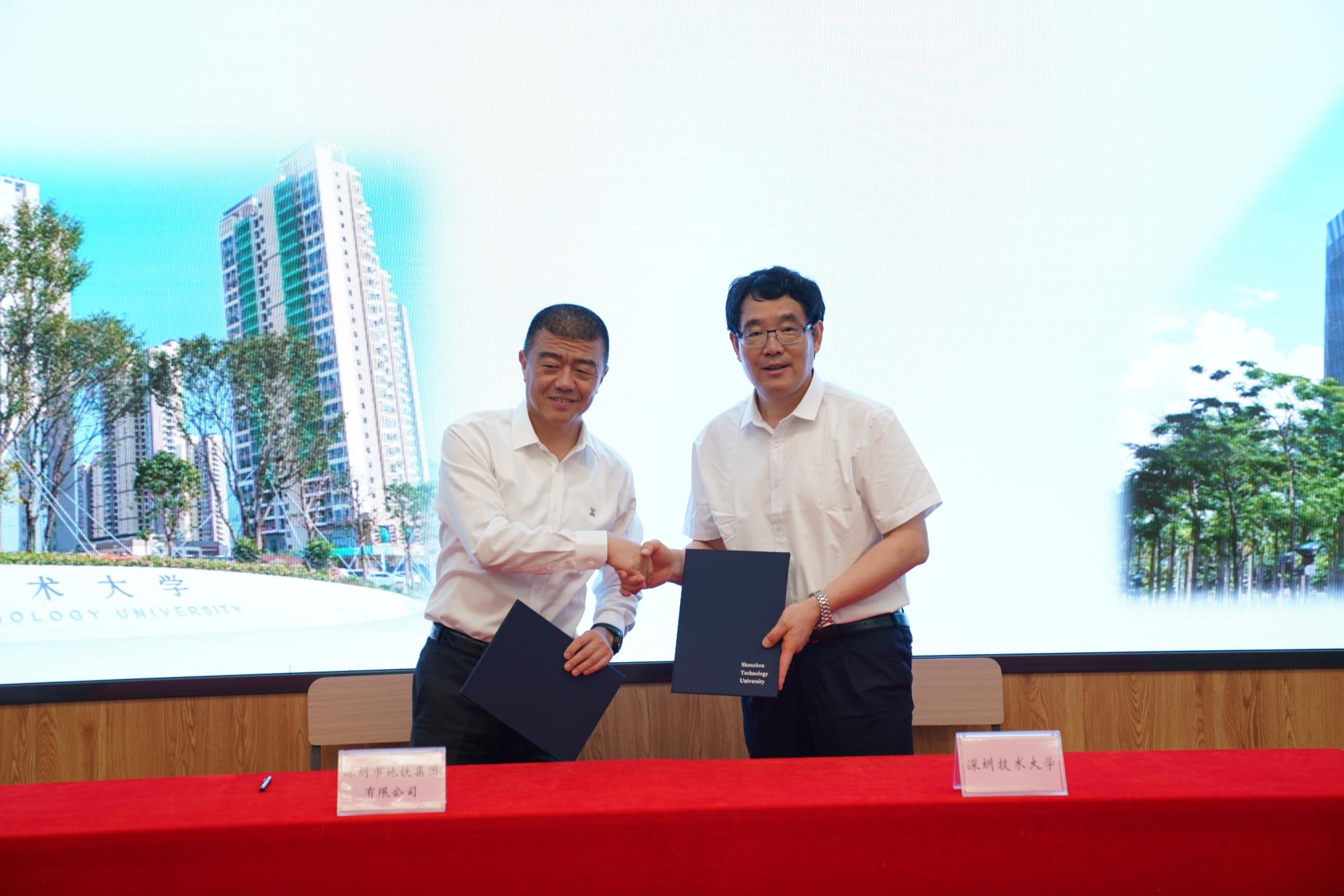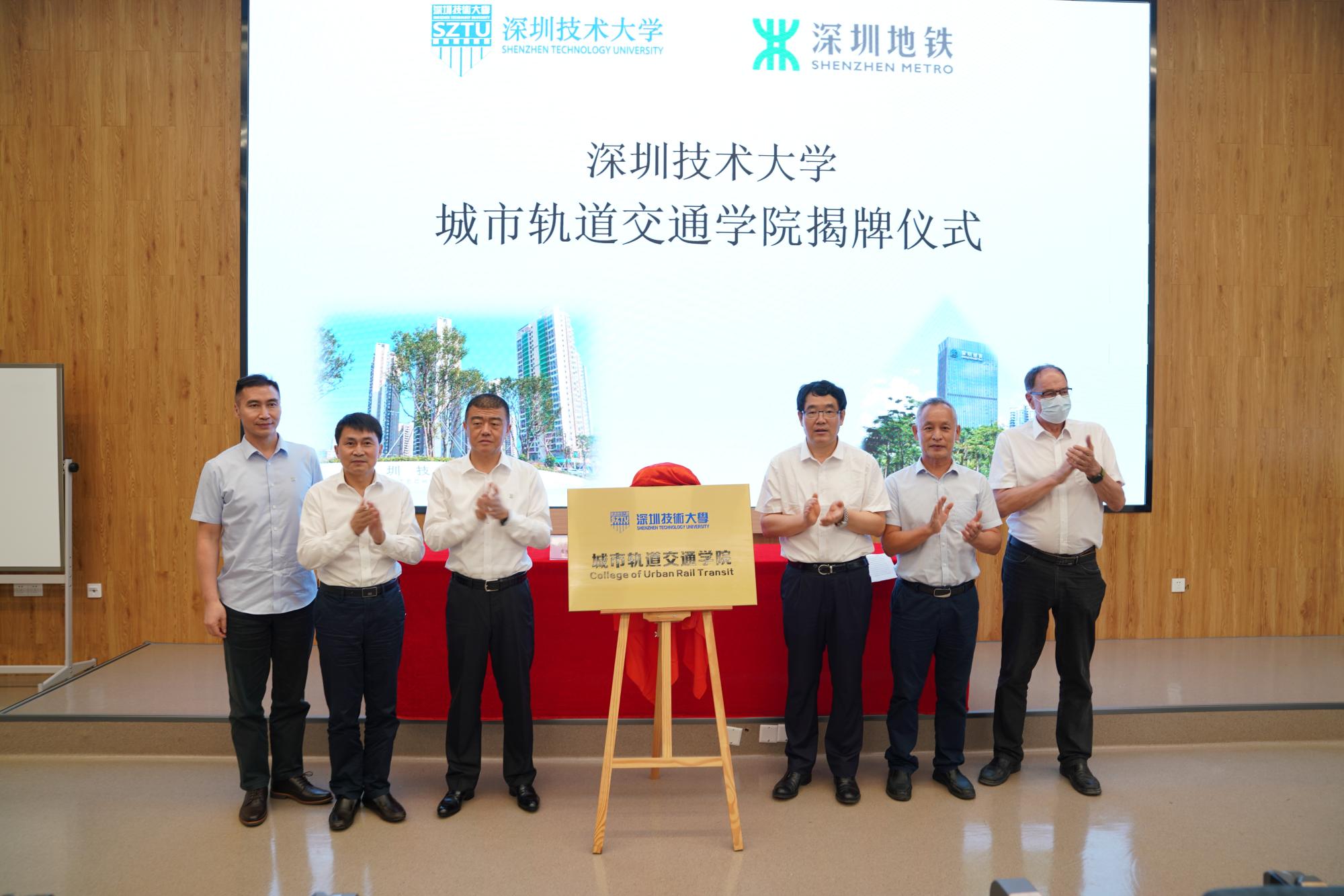 5月31日,深圳技术大学举行合作协议签署及揭牌仪式,与深圳市地铁集团有限公司(以下简称深圳地铁集团)共同组建“深圳技术大学城市轨道交通学院”,面向粤港澳大湾区城市群综合交通一体化的城市轨道交通及其所驱动交叉领域,共商高素质创新型、高端技能人才培养,高水平科学研究、技术开发及成果转移转化。深圳地铁集团党委书记、董事长辛杰,深圳地铁集团党委副书记牟勇,深铁运营集团董事长陈琪,深铁大学校长刘美满、副校长曾健,深圳技术大学校长阮双琛、副主任徐刚、城市交通与物流学院院长Franz Raps、城市轨道交通学院副院长程涛出席签约仪式。