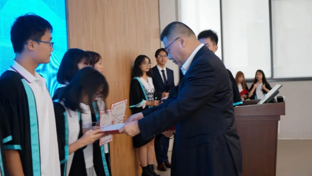 宸大控股(集团)有限公司总裁齐振州上台为深圳技术大学香港宸大优秀学生奖学金获奖学生颁奖。