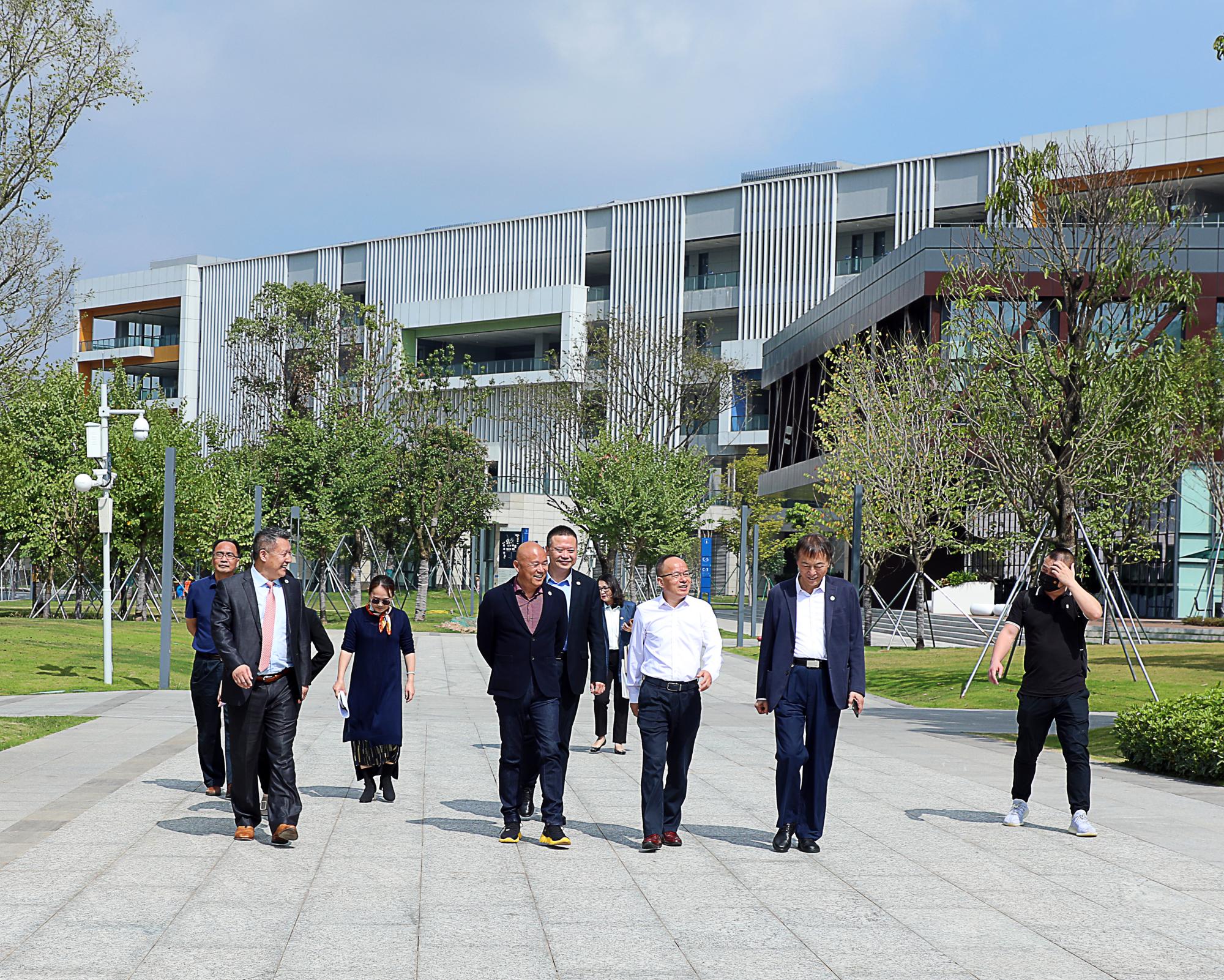 座谈会后,张基宏书记陪同陈明金主席一行参观了校园。学校党委办公室、教务部、基建部、大数据与互联网学院、健康与环境工程学院等部门负责人参加活动。