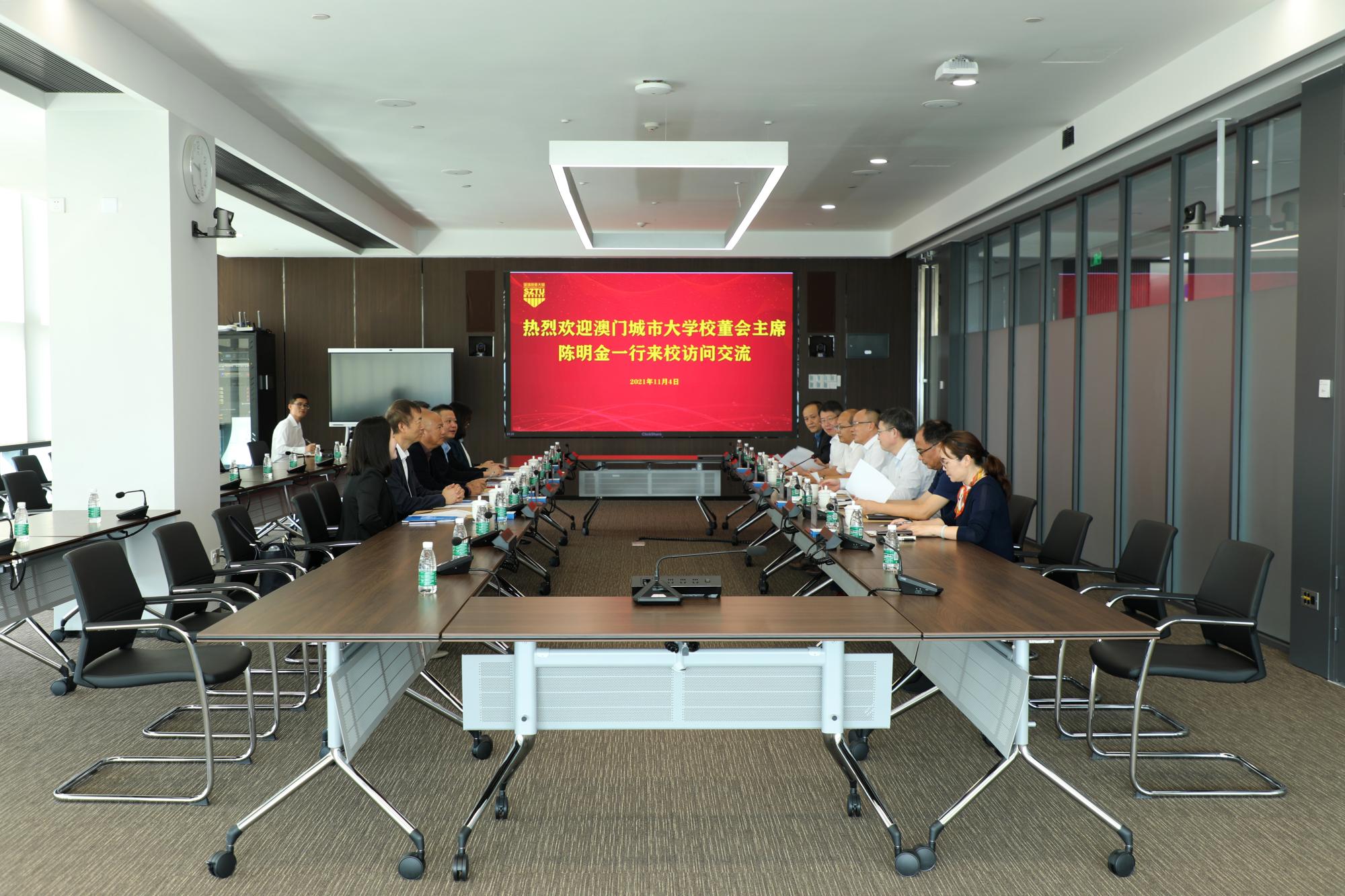 陈明金主席和刘骏校长分别介绍了澳门城市大学的基本情况。他们表示,澳门城市大学是中国澳门地区的一所综合性大学,具有学士、硕士、博士授予权,双方互补性强,合作前景广阔。