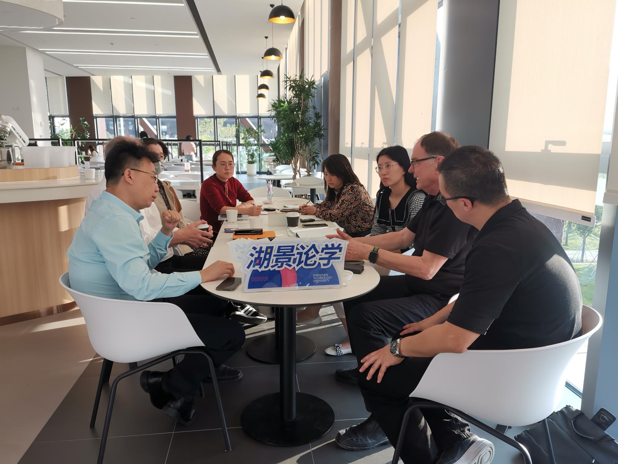 2021年11月16日下午,深技大“湖景论学”第一期教学研讨会在C00-湖景餐厅进行。教务部主任刘宏伟、城市交通与物流学院院长Franz Raps、商学院院长Holger Haldenwang参加活动。