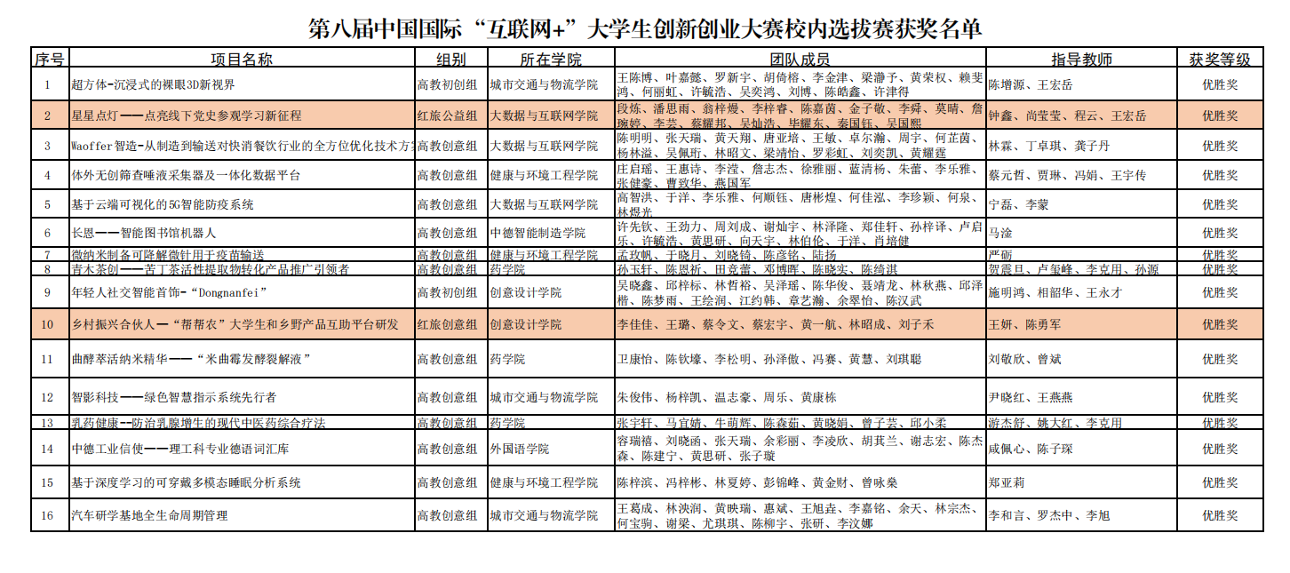 本次校内选拔赛自今年4月启动以来,共收到学院推荐项目88个,其中高教主赛道19个,红旅赛道69个,参赛学生822人次。经资料初审、校赛网评,最终有32个项目入围校级决赛。