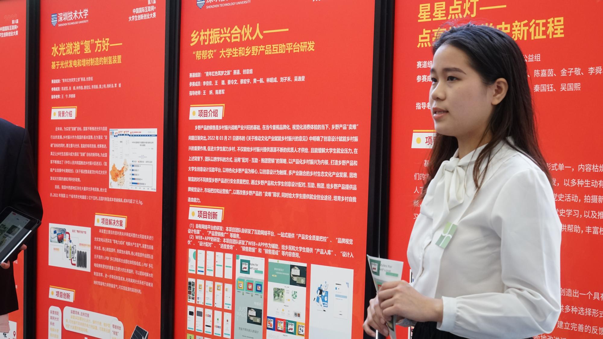 5月28日,深圳技术大学第八届中国国际“互联网+”大学生创新创业大赛校内选拔赛决赛在C5教学楼106教室举行。决赛从32个入围项目中评选出金奖2项,银奖6项,铜奖8项,优胜奖16项。