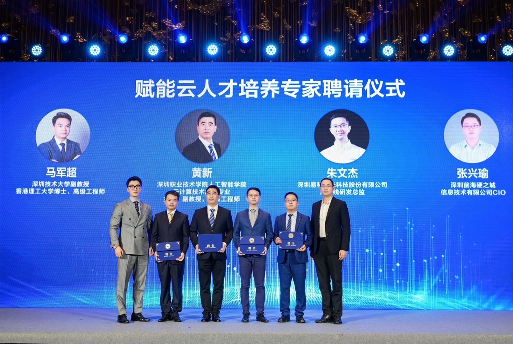 在华为全联接大会2022“赋能行业 融通创新”赋能云高峰论坛活动上,马军超等四位首批鲲鹏卓越工程师,被特聘为鲲鹏(南山)创新人才基地专家,并由鲲鹏产业源头创新中心(深圳)有限公司总经理陈志明、华为云深圳产业发展与运营部总经理杨晨曦正式授予聘书。