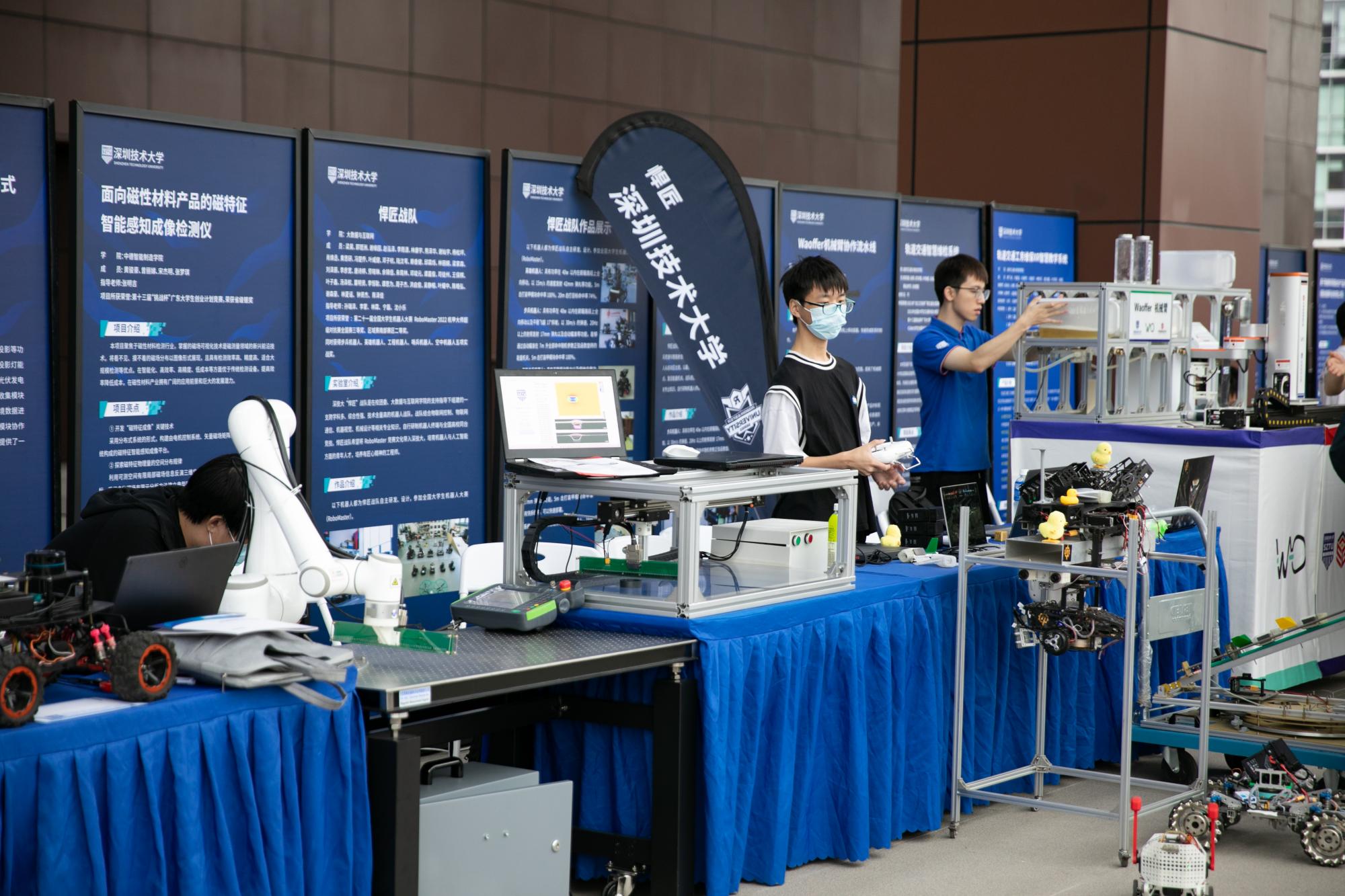 双选会同期还举办了2022年深圳技术大学学生创新成果展,共有140余项省级以上参赛获奖作品和20余个学生创新实物参展。通过对学生优秀的创新创业、学科竞赛及社会实践项目成果进行集中展示,促进校内创新创业学生团队交流,营造浓厚的创新创业氛围,并向百余家企业面试官展示深技大学子的动手实践能力和创新力。不少企业面试官在看完学生创新成果后对深技大的项目式教学理念表示赞赏,充分肯定了深技大学子的动手能力和创新实践能力。