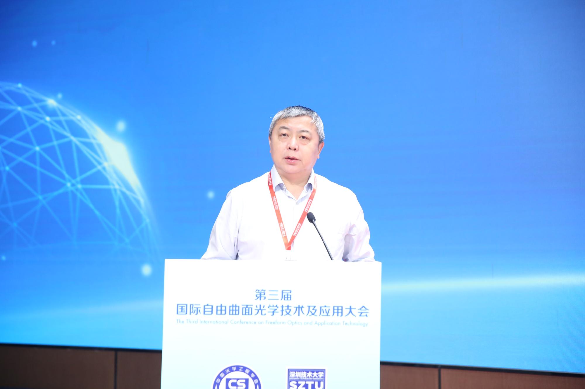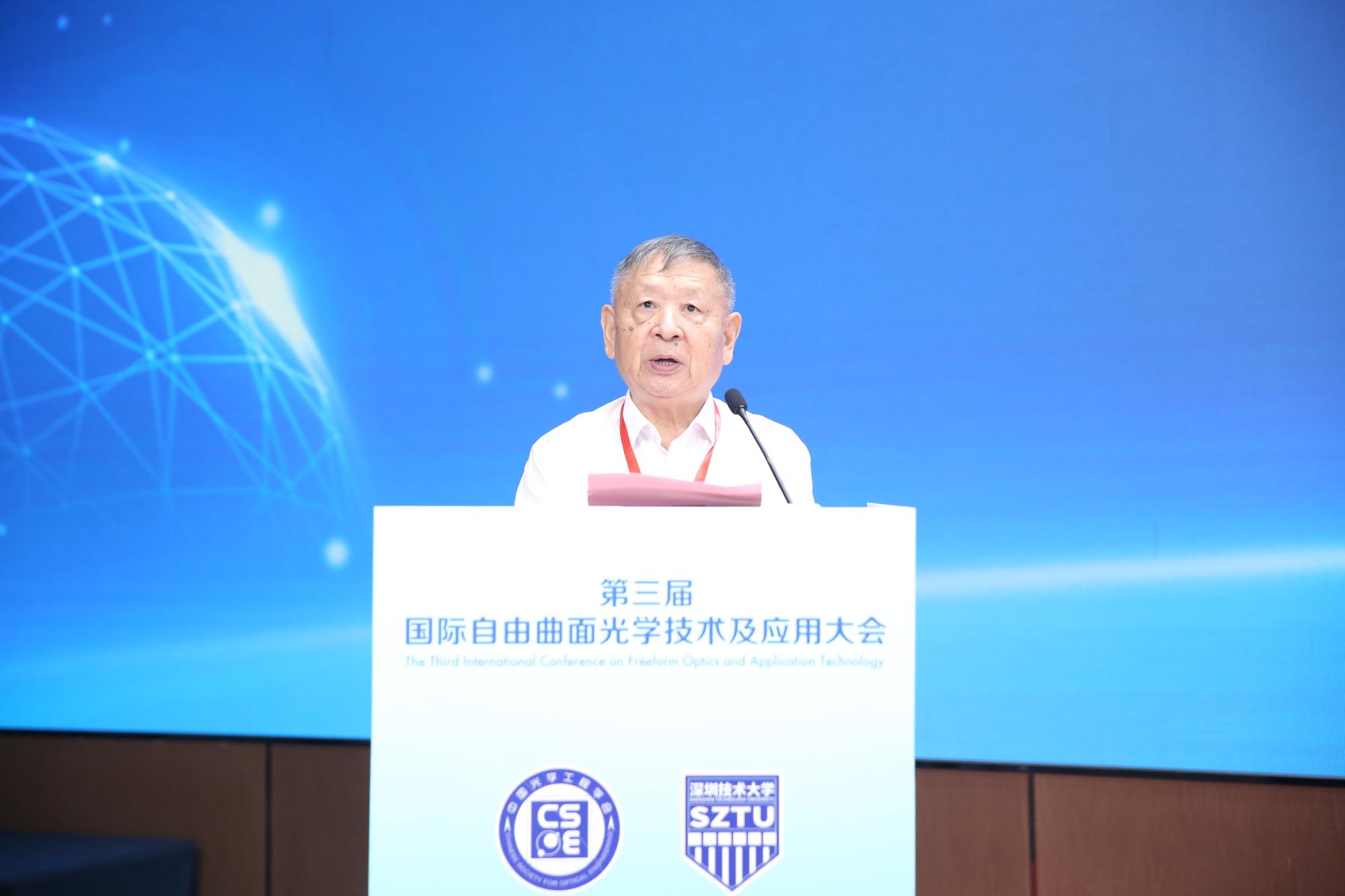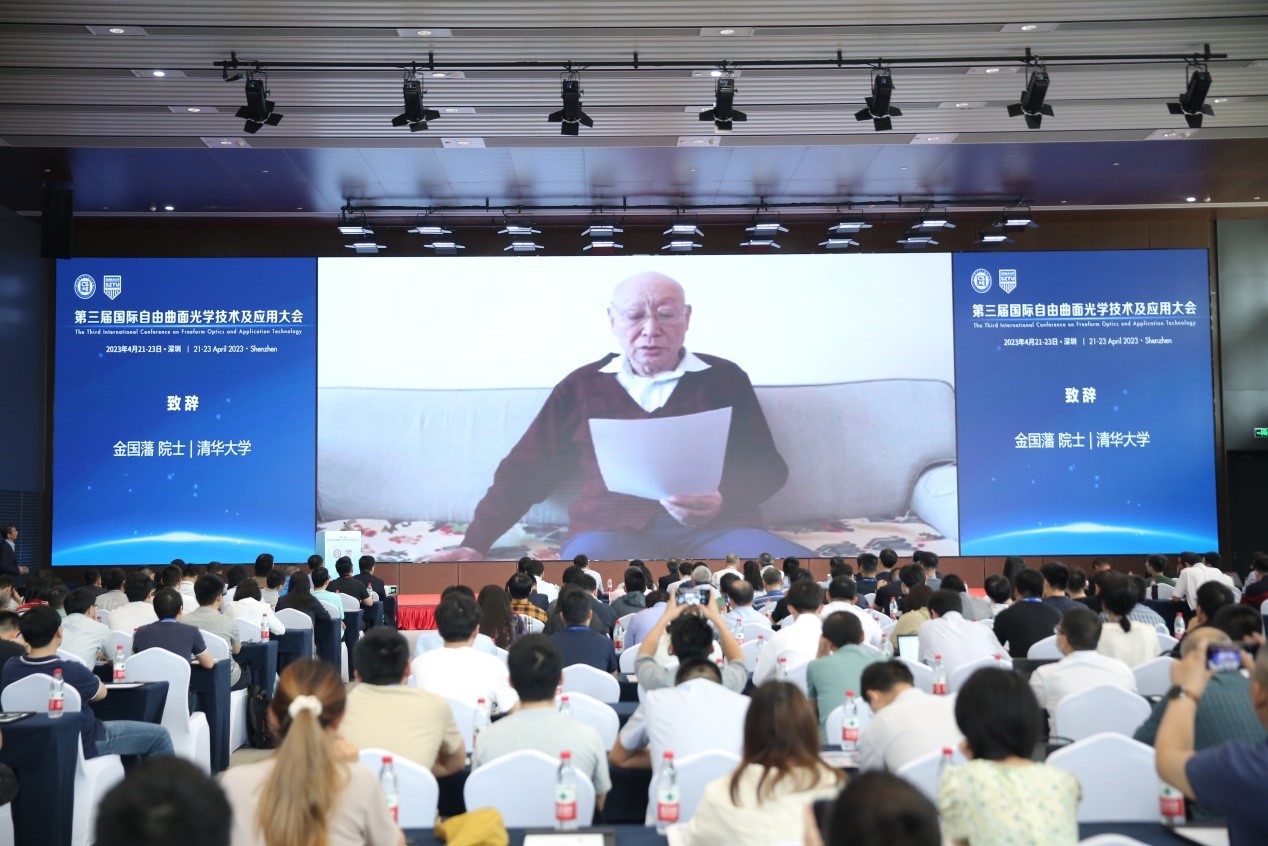深圳市坪山区副区长吴志柳、深圳市科学技术协会党组成员孙楠先后致辞,对各位嘉宾和参会代表表示热烈欢迎和衷心感谢;范滇元院士就自由曲面近年来的发展及未来潜力发表讲话;清华大学金国藩院士通过线上方式致辞,介绍了我国自由曲面光学早期研究及最新涌现的科研成果,对自由曲面领域寄予期望,并预祝大会顺利举办。