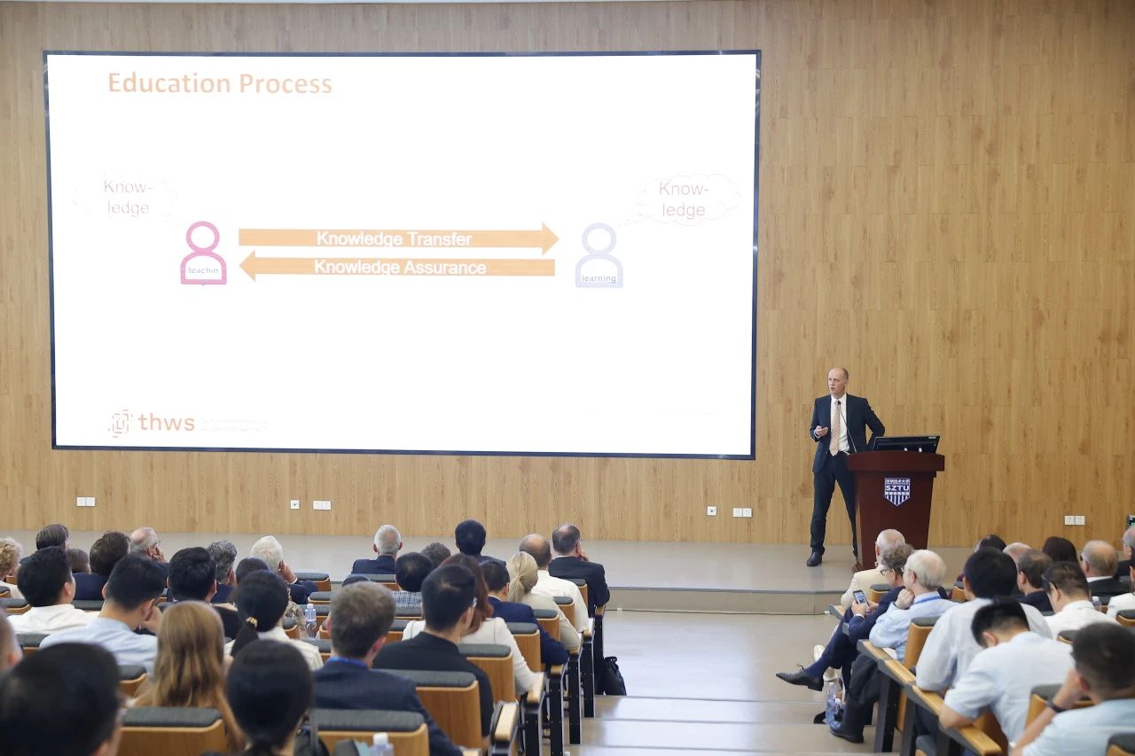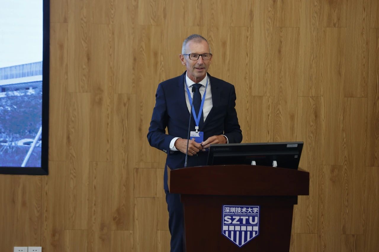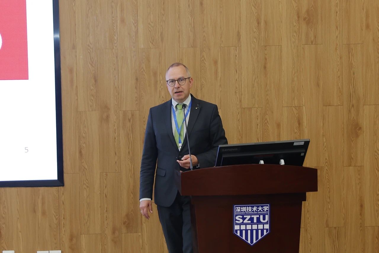 9月15日晚,在雨中,深圳技术大学一年一度的开学典礼如约而至。在开学典礼的舞台上,德国维尔茨堡-施韦因富特应用科技大学校长罗伯特·盖尔布纳教授的现身获得了师生们的热烈掌声。他的发言既是对2023级新生的欢迎,也是在向深技大2023国际教学周告别。