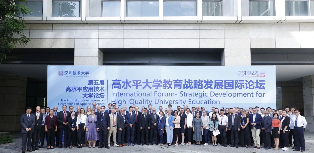深圳技术大学2023国际教学周的最后一天,第五届高水平应用技术大学论坛作为“压轴”活动登场,六位来自德国、瑞士、奥地利高校的校长、教授与深圳技术大学校长阮双琛共聚一堂,为高水平大学教育高质量发展出谋划策。