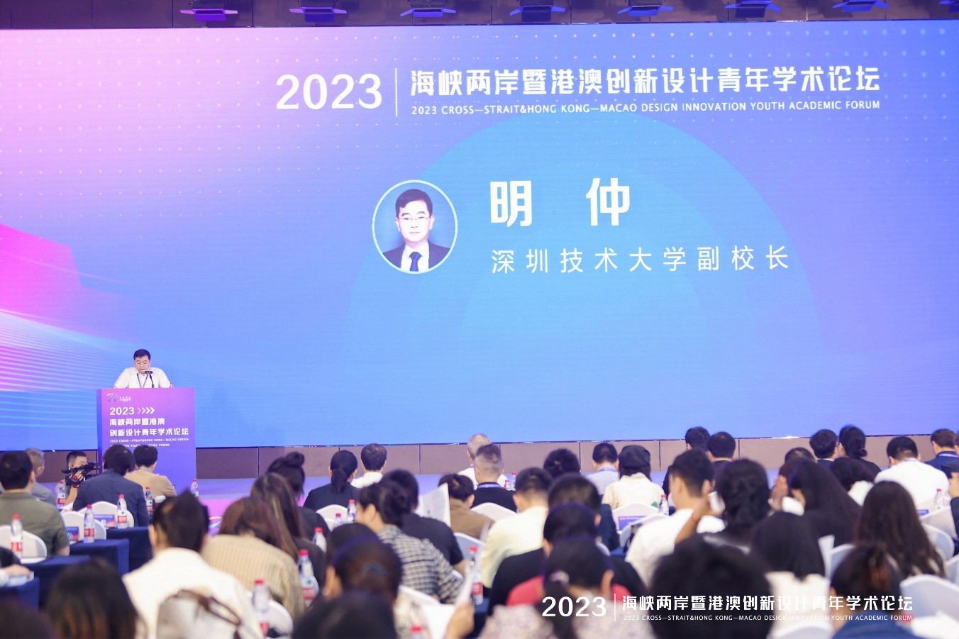 深圳技术大学副校长明仲教授对远道而来参与论坛的嘉宾、专家和学者表示热烈欢迎。他指出,随着科技的不断进步和社会需求的不断增长,创意设计已经成为推动经济增长、提高生活质量的关键要素。深圳技术大学坐落在中国改革开放的前沿热土,是一所充满活力和创新力的高校,我们致力于培养本科及以上层次具有国际视野、工匠精神和创新创业能力的高水平工程师、设计师等高素质应用型人才。希望通过此次论坛的举办,加强与海峡两岸及港澳青年设计师们的相互交流、合作和学习,一起推动设计领域的进步,为更好地服务社会、传承文化作出更大的贡献。