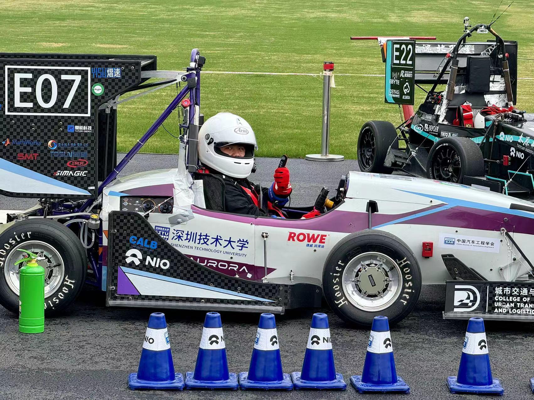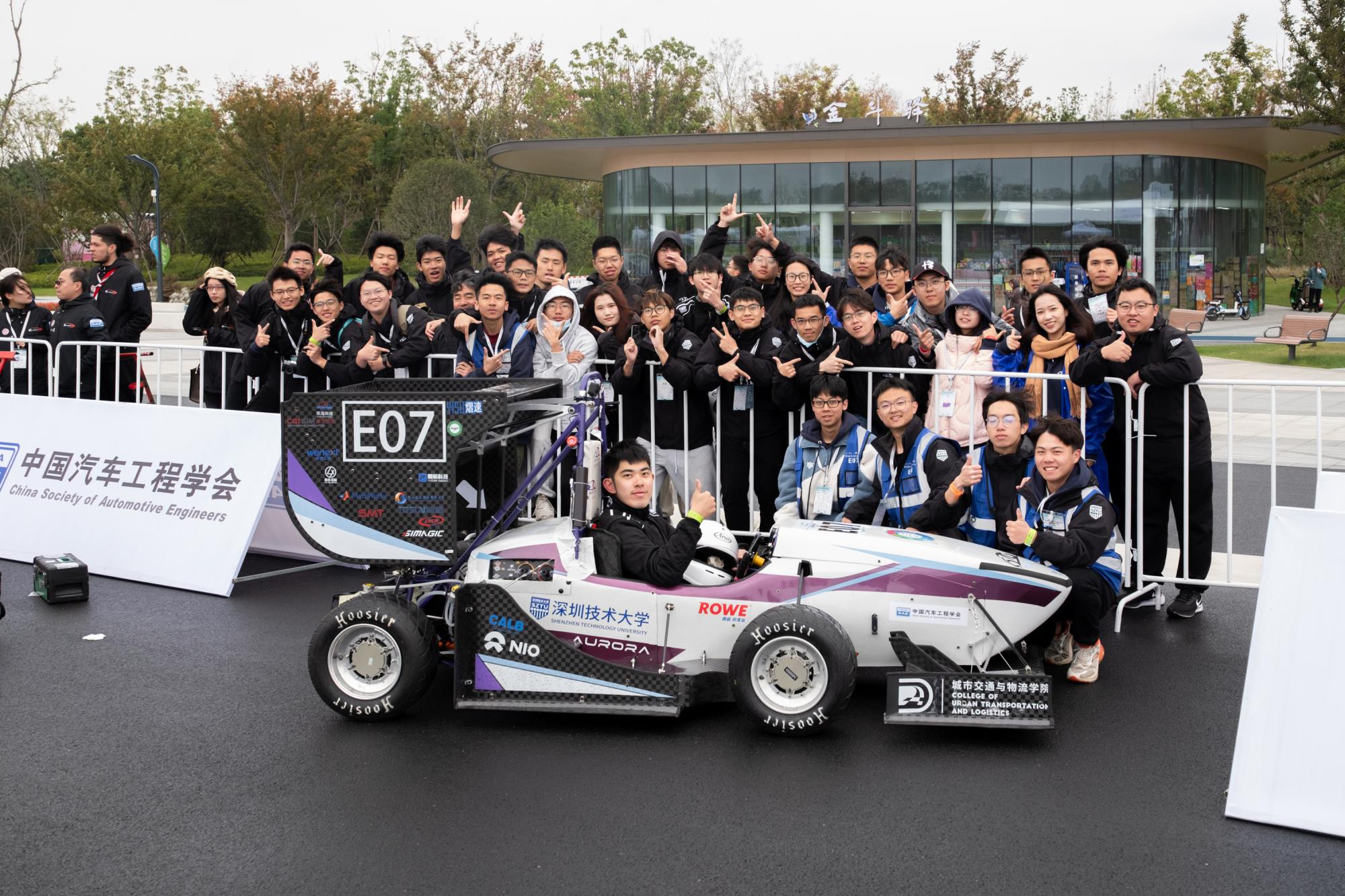 深圳技术大学赛车工作室由指导老师田萌健、罗杰中带队,携全新改进的极光电动方程式赛车Aurora-23,以E07的车号代表学校参加比赛,最终以全国排名第二的优异成绩,将全国总亚军及多项“蔚来大奖”收入囊中,并获得出国参赛奖金支持!