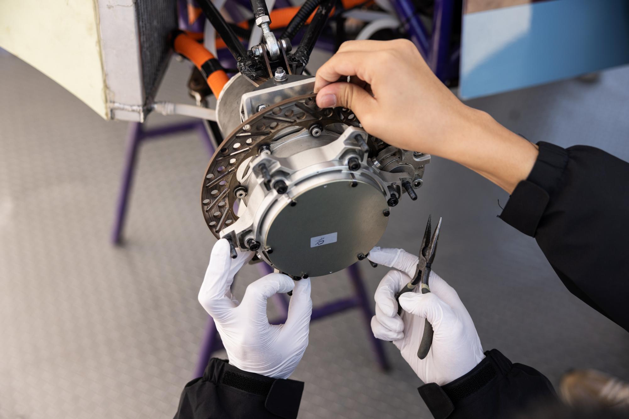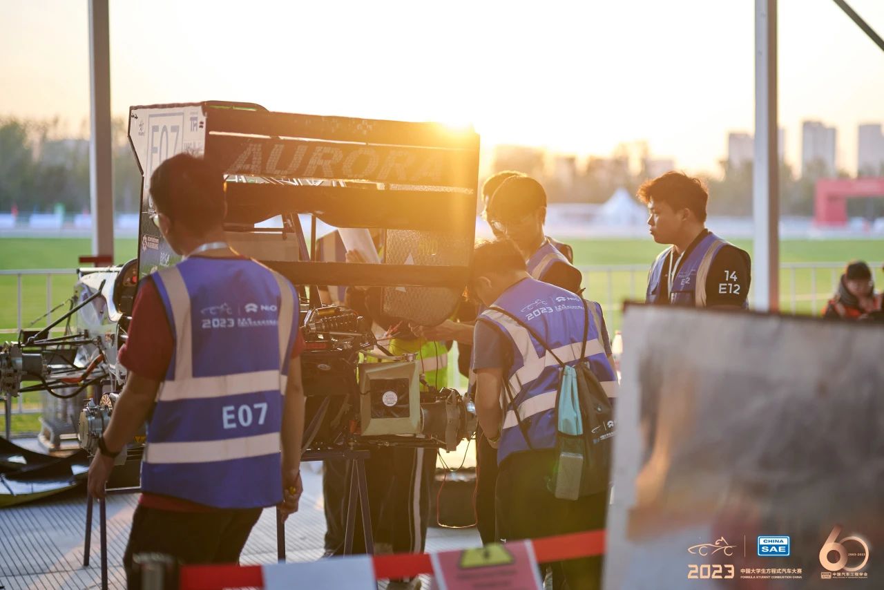 备赛的那一段时间,车队的同学们经常熬夜“加班加点”,不断地对我们的E07进行测试、维护与优化,有时车子起步会出现制动异响、高压掉电、漏水漏油等问题,是大家一次又一次地进行错误排查、解决问题、优化设计,才让我们的E07变成如今这样一辆安全的、稳定的、性能好的、漂亮的赛车。