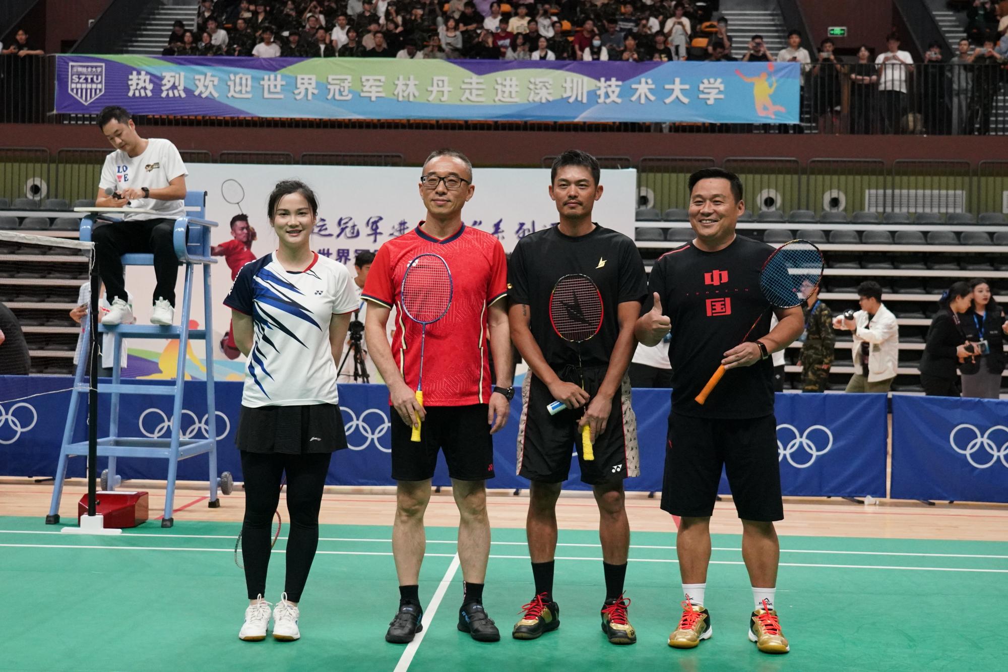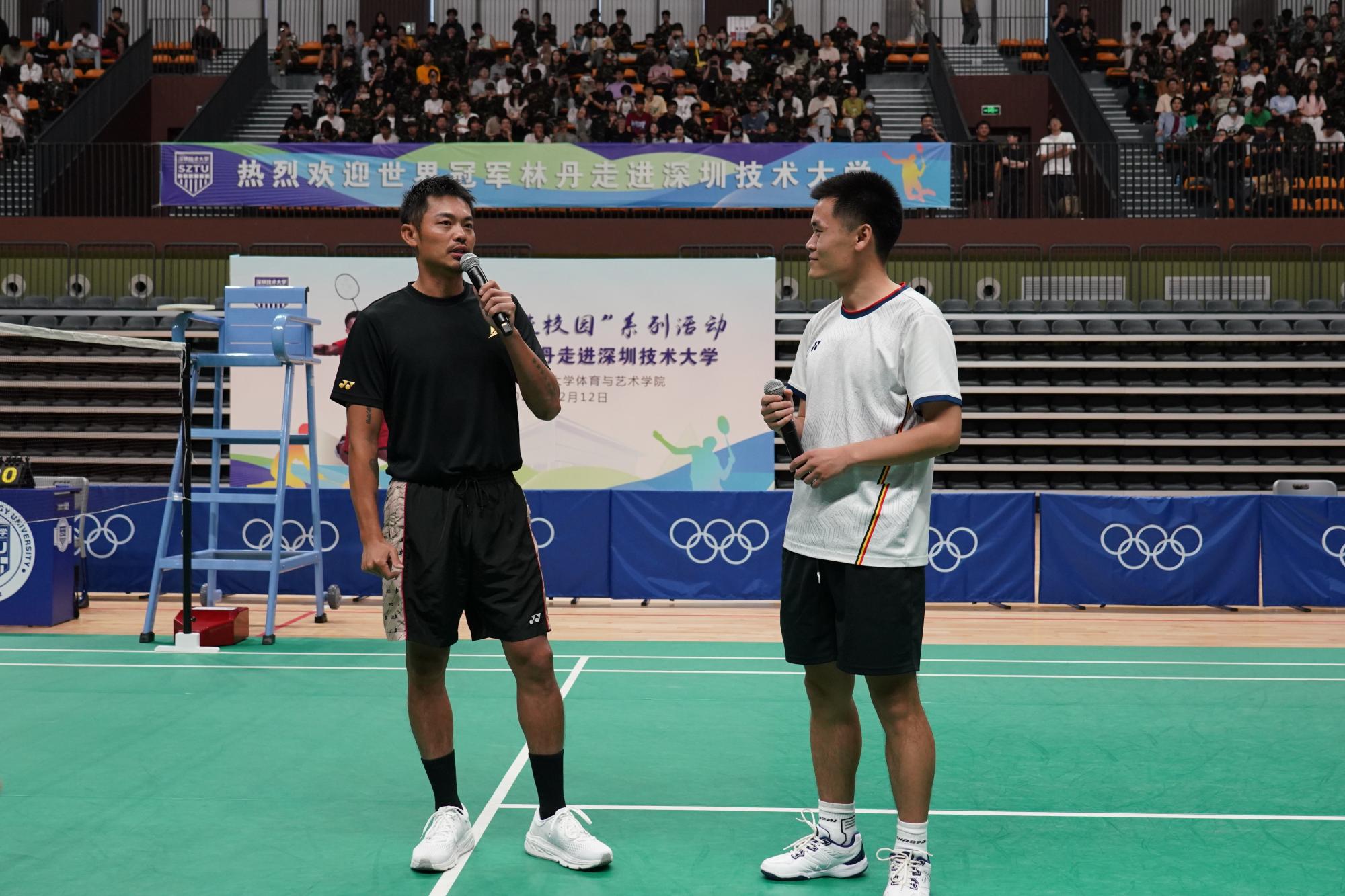 12月12日,羽毛球奥运冠军、世界羽坛传奇球星林丹来到深技大,与深技大学子交流互动,切磋球技,展现羽毛球运动的魅力,鼓励大学生加强体育锻炼,保持健康体魄。