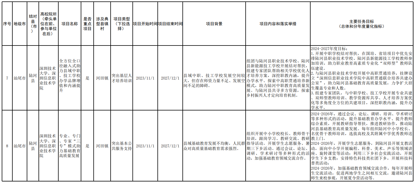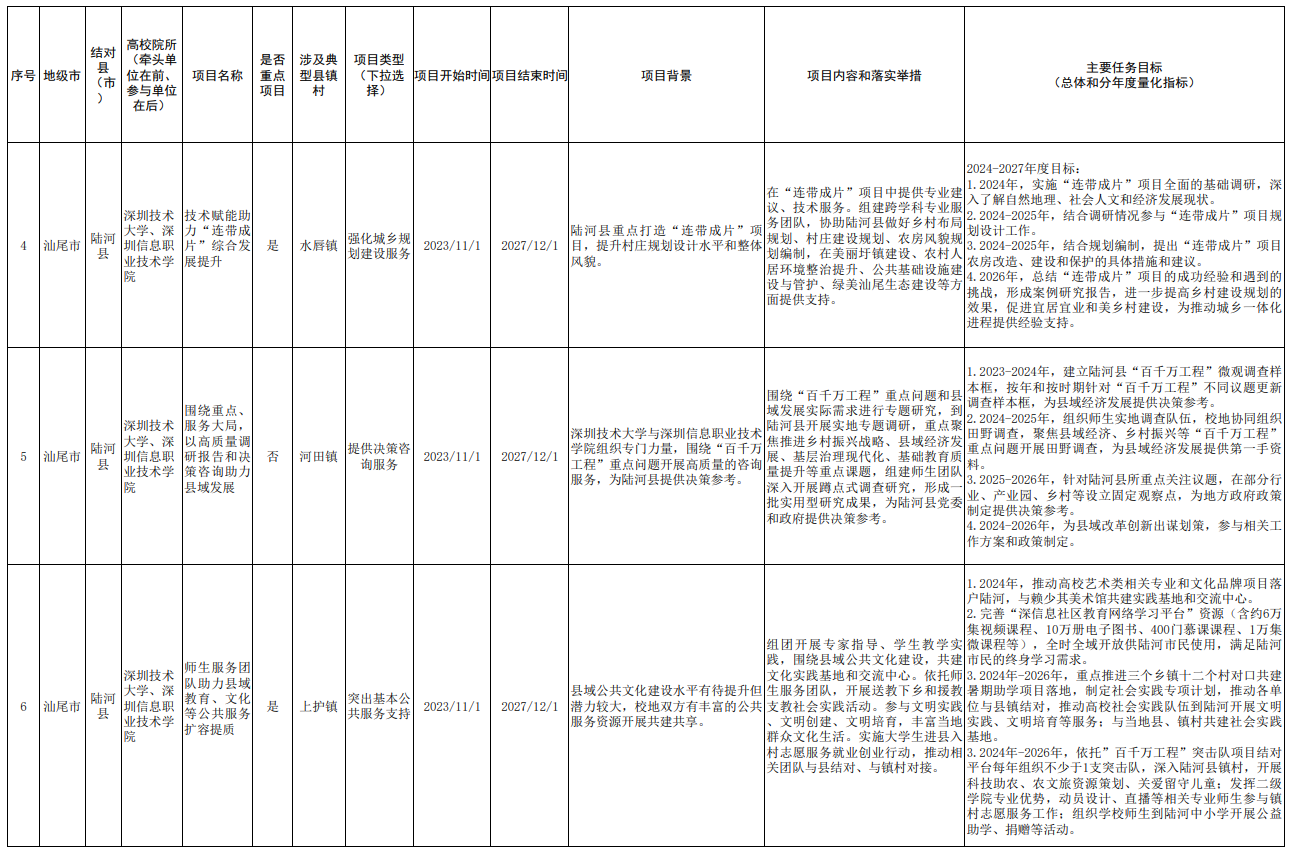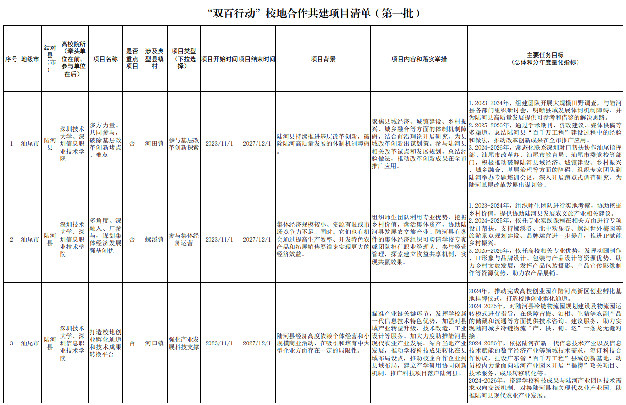 2.深圳技术大学“双百行动”校地合作共建项目清单(陆河县)