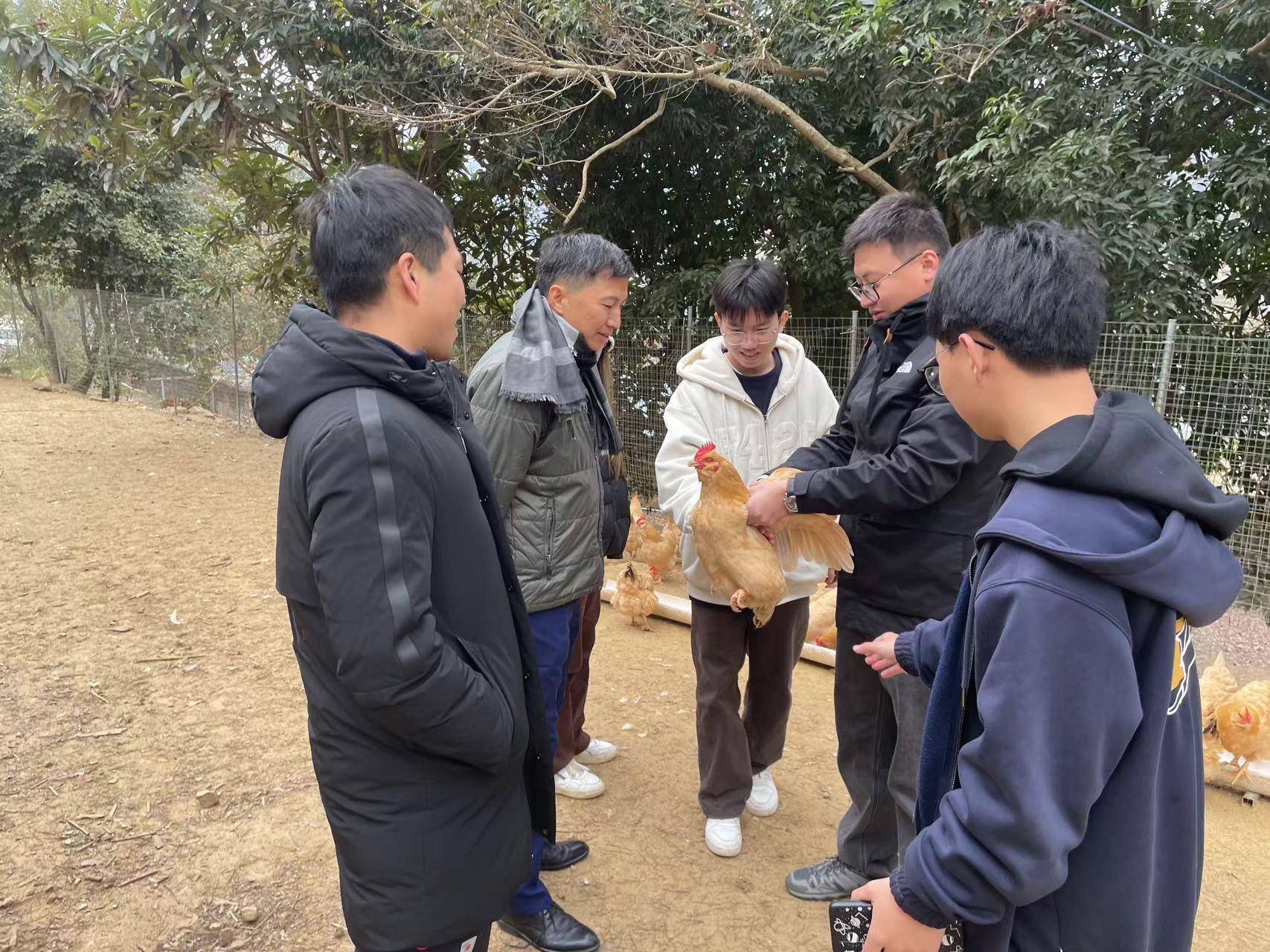 在连平县鹤湖种养合作社,学生团队深入了解胡须鸡品种特点、基地规模、养殖生产销售等相关情况。黄子嵩老师建议完善场地设计,与外界飞禽分离;同时要做好资质升级工作,完善产业链质量安全追溯体系,加大对胡须鸡的宣传力度,将优秀的农副产品推广至海外。