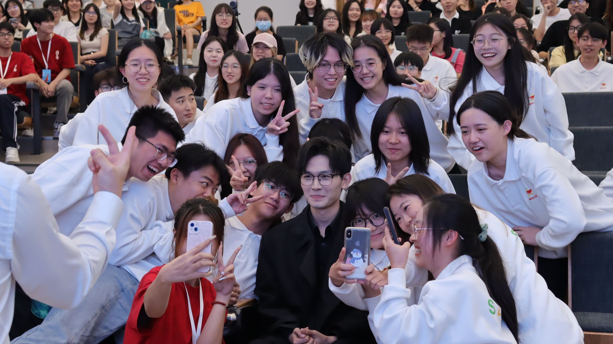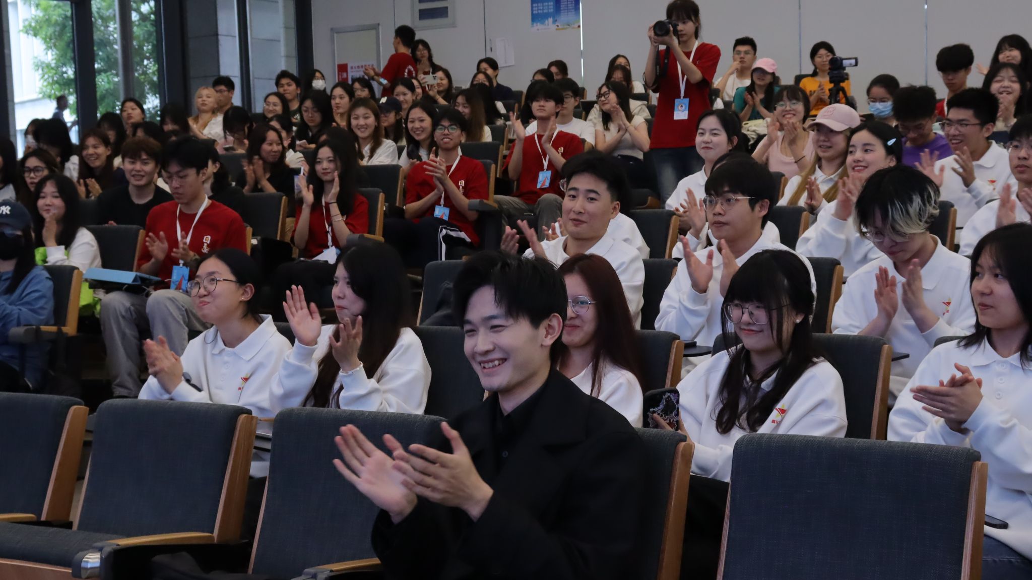 在交流环节,同学们踊跃提问,针对学习方法、未来规划、国际交流、能力锻炼、当下困惑等方面提出了十余个问题。胡明昊结合个人看法、自身经历一一进行解答、回复。活动现场气氛热烈、互动频繁。胡明昊幽默的发言时不时引来现场学生阵阵掌声、笑声和欢呼声。