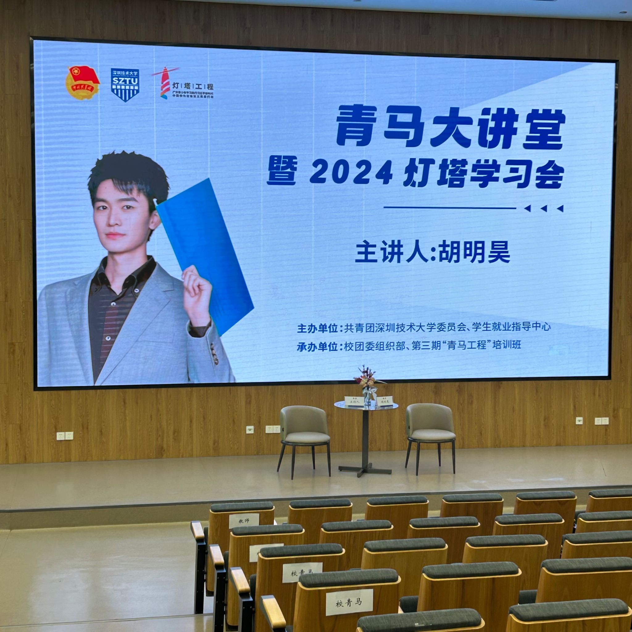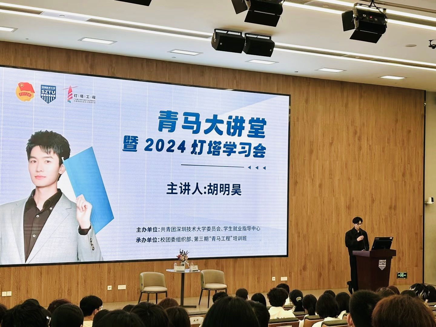5月21日下午,深圳技术大学青马大讲堂暨2024灯塔学习会在C-5教学楼106阶梯教室顺利举行。活动邀请《令人心动的offer》第五季人气实习生、北京大学国际法学院硕士研究生胡明昊担任主讲人,为学校第三期“青马工程”培训班全体学员、深技大在校师生青春开讲!