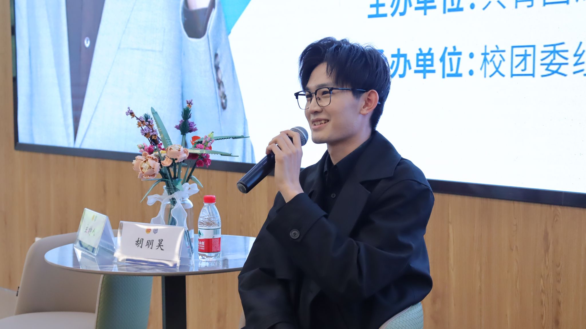 活动中,胡明昊围绕个人成长过程、大学生活、求职实习经历等方面作经验分享。在讲述成长经历时,他以参与播音主持训练为例,鼓励大家不要害怕“丢脸”,要抓住机会勇敢表达,培养一个强大的内心。在谈到大学生活时,他认为在学习之余尽可能多参加如“挑战杯”竞赛或其他第二课堂的活动是很重要的。“做的比别人多,你才能收获比其他人更多的东西。”他这样说。