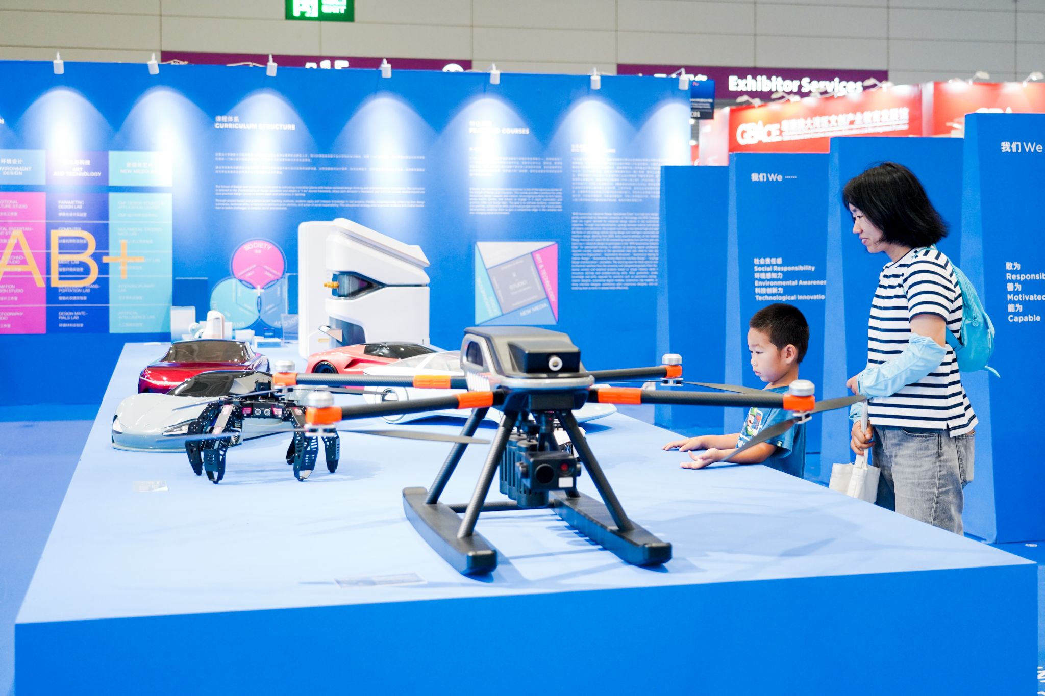 开幕式当天,深圳技术大学展区以“技大蓝”的纯蓝空间,吸引了众多业界专家及企业代表的驻足观看。水上救援无人机、比亚迪汽车设计、关注可持续发展的景观设计、呈现非遗文化的新媒体作品等给参观者留下了深刻的印象。布展师生表示,以 “创意向善、设计为众”为主题的成果展览,希望传达深技大创意设计学院的培养目标,即通过培养学生的社会责任感、环境感知力、科技创新力,引导学生做“向善”的创意、“为众”的设计,以创意设计的力量实现新时代生活方式的变革。