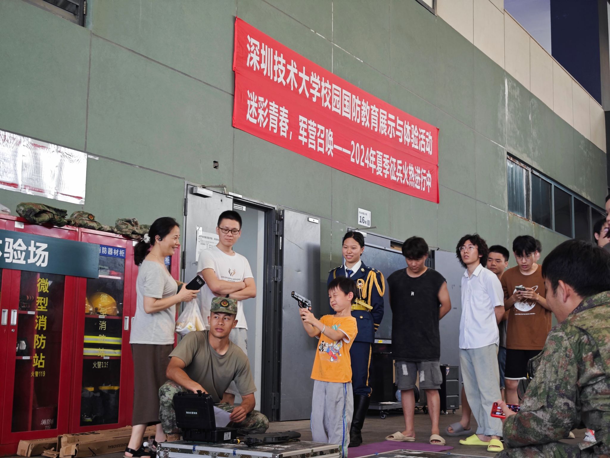 活动中,以深圳技术大学退役大学生为主体组成的国防教育先锋队队员化身志愿者,协助布置场地、维持现场秩序,充当讲解员,为同学们科普枪械知识、解答参军疑惑,讲述参军故事、分享难忘体验,展现了退役不“褪色”的良好形象和风采。