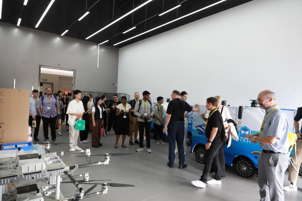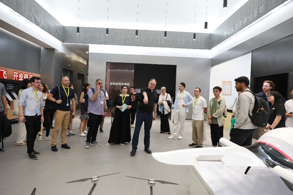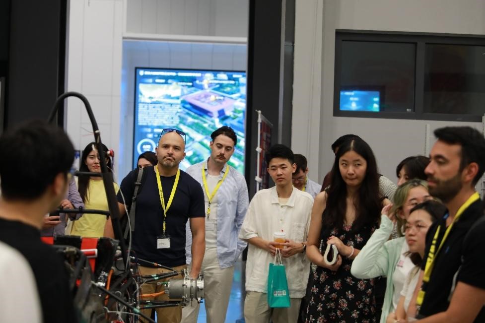 在深技大师生的陪同下,访问团调研了城市交通与物流学院无人超市、智能网联汽车试验室、赛车工作室以及顺丰智慧物流实训基地。城市交通与物流学院院长Franz Raps对瑞士师生的到来表示热烈欢迎。在参观过程中,瑞士师生对深技大在智能交通和物流领域的创新实践表示了极大的兴趣。在中德智能制造学院的中德啤酒酿造过程控制实验室,瑞士师生详细了解了啤酒酿造的全过程。深技大图书馆独特的建筑风格和现代化的内部布局也给访问团留下了深刻印象。