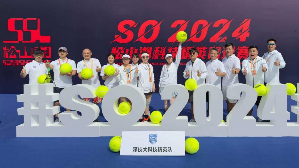 松山湖·科技精英网球赛创办于2019年,设有东莞松山湖和美国硅谷两大赛区。本次松山湖赛区赛事分为院士组、精英竞赛组两大组别,参赛选手来自北京大学、南方科技大学、香港科技大学、湖南大学、深圳技术大学等知名科研院所与企业。深技大教师们踊跃报名、积极备战,13位教职工组成深圳技术大学科技精英代表队参赛。