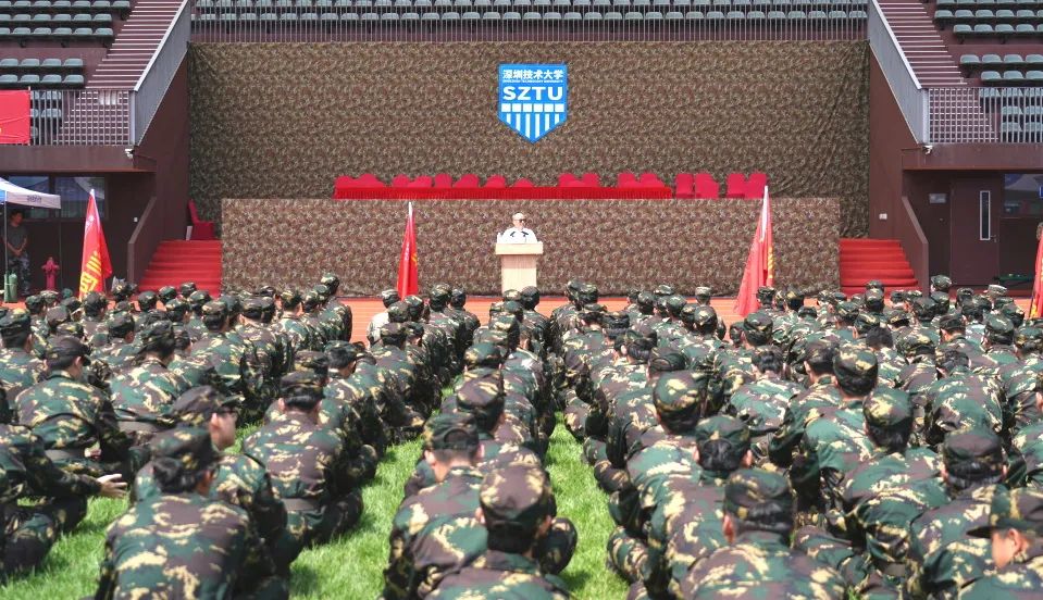 9月11日上午,深技大新生“思政第一课”首次走出课堂,党委书记张基宏来到北区田径场,为军训中的新生讲授了一堂生动的思政课。